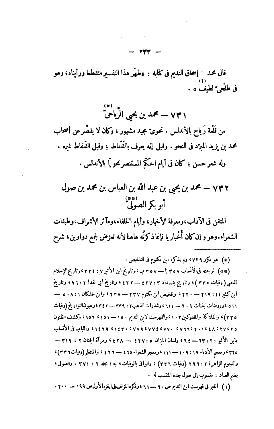 732 - محمد بن يحيى بن عبد الله بن العباس بن محمد بن صول أبو بكر الصولىّ «2»