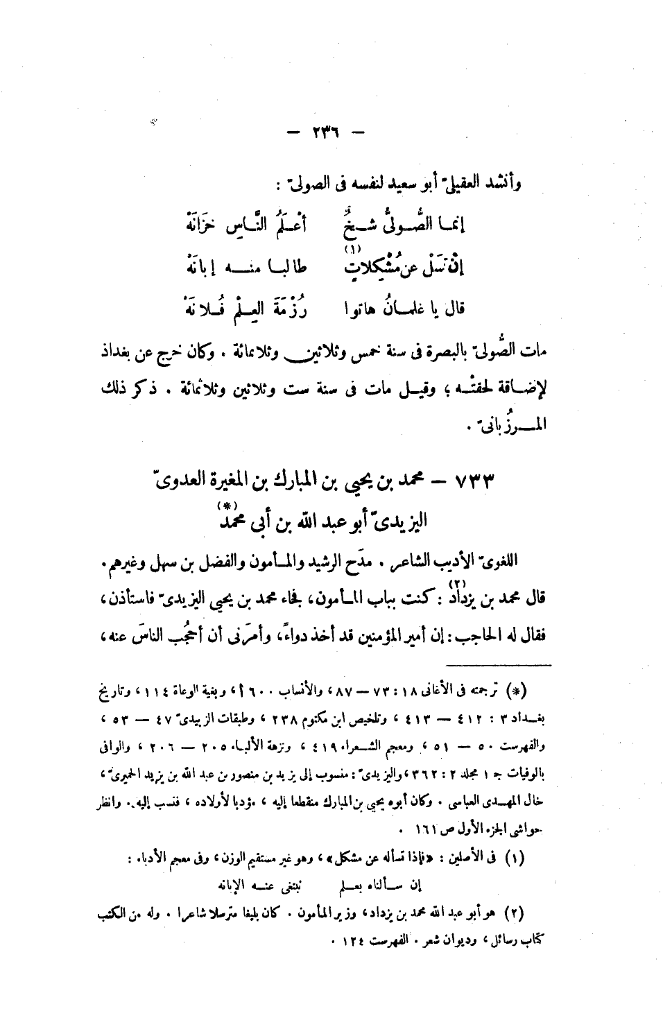 [2] هو أبو عبد الله محمد بن يزداد، وزير المأمون. كان بليغا مترسلا شاعرا. وله من الكتب كتاب رسائل، وديوان شعر. الفهرست 124.
