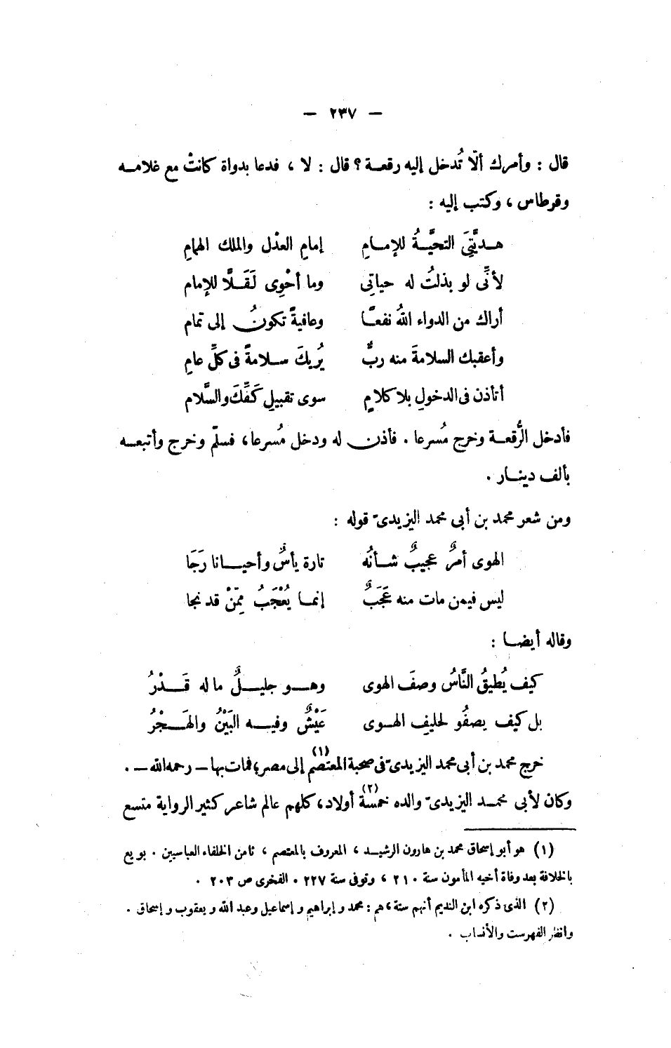 [1] هو أبو إسحاق محمد بن هارون الرشيد، المعروف بالمعتصم، ثامن الخلفاء العباسيين. بويع بالخلافة بعد وفاة أخيه المأمون سنة 210، وتوفى سنة 227. الفخرى ص 203.