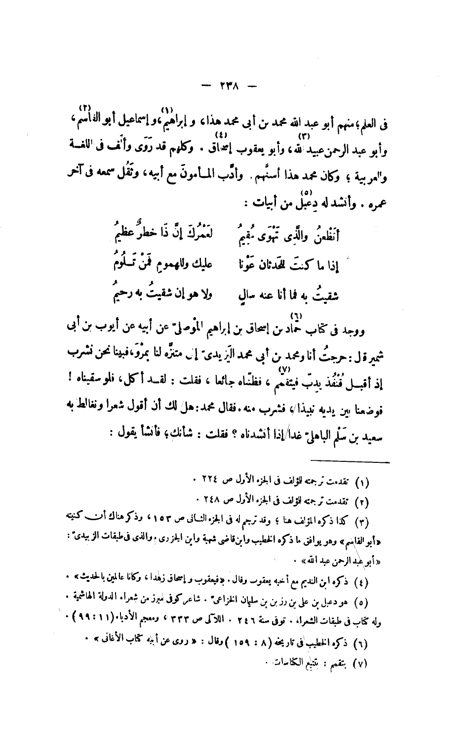 [6] ذكره الخطيب فى تاريخه (8: 159) وقال: «روى عن أبيه كتاب الأغانى».