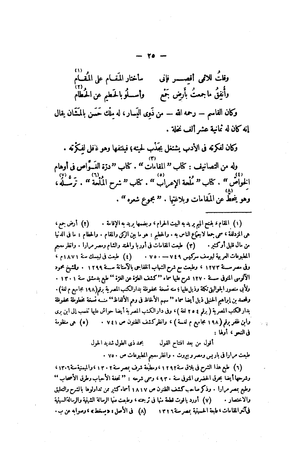 وله من التصانيف: كتاب المقامات [3]. كتاب درّة الغوّاص فى أوهام الخواصّ [4]. كتاب ملحة الإعراب [5]. كتاب شرح الملحة [6]. ترسّله [7]، وهو ينحطّ [8] عن المقامات وبلاغتها. مجموع شعره.