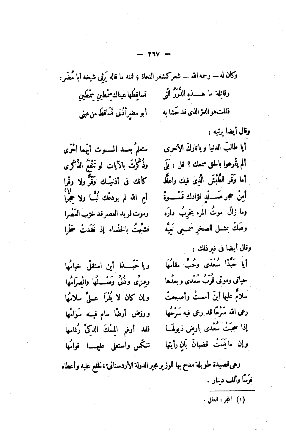 وهى قصيدة طويلة مدح بها الوزير مجير الدولة الأردستانىّ، فخلع عليه وأعطاه فرسا وألف دينار.