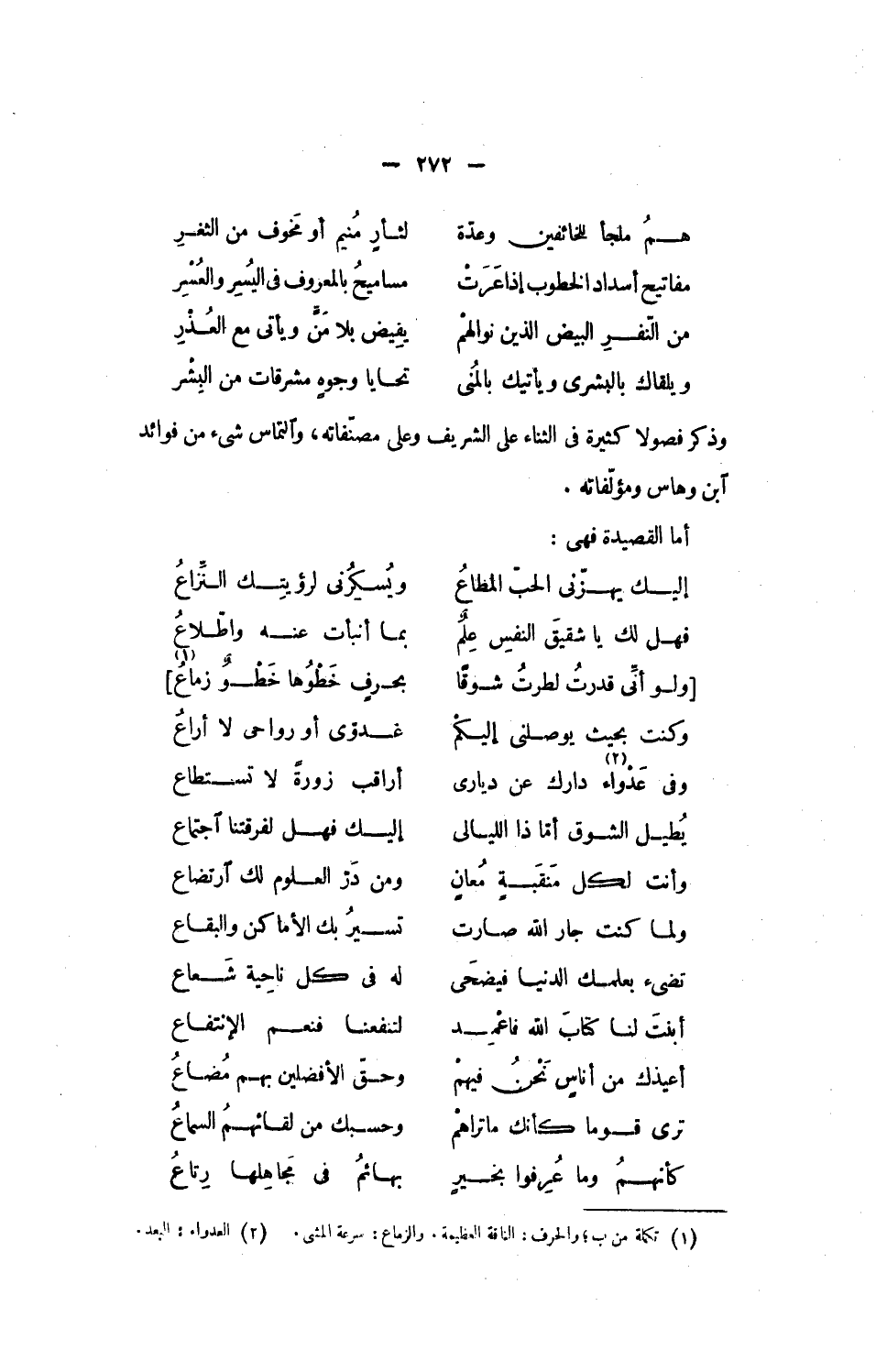 [ولو أنّى قدرت لطرت شوقا ... بحرف خطوها خطو زماع [1]]