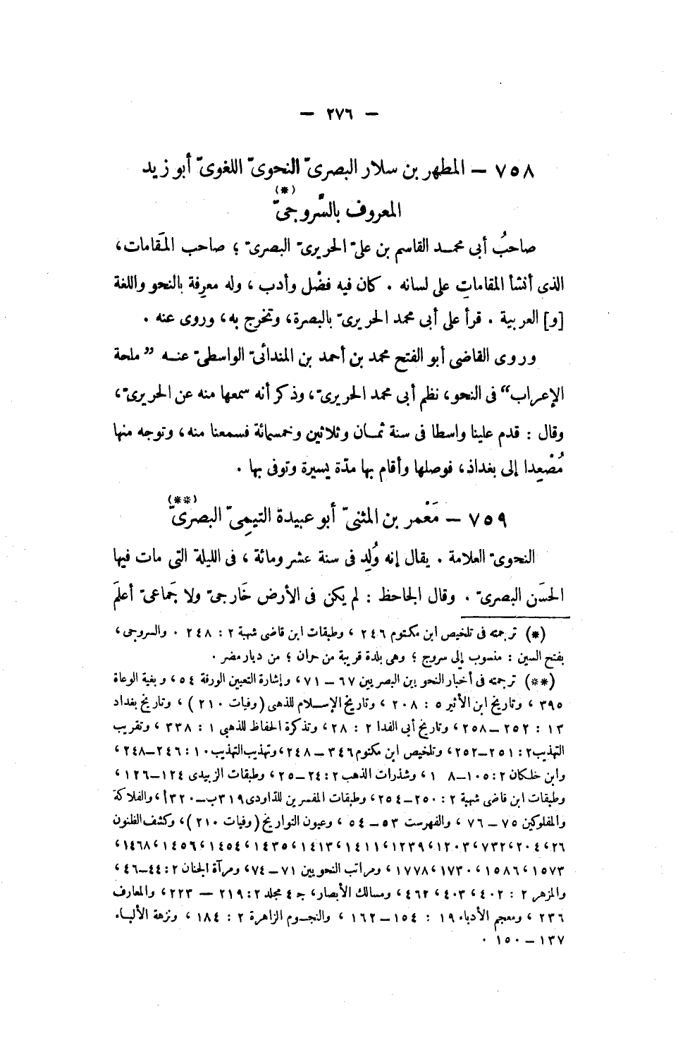 758 - المطهر بن سلار البصرىّ النحوىّ اللغوىّ أبو زيد المعروف بالسّروجىّ «1»