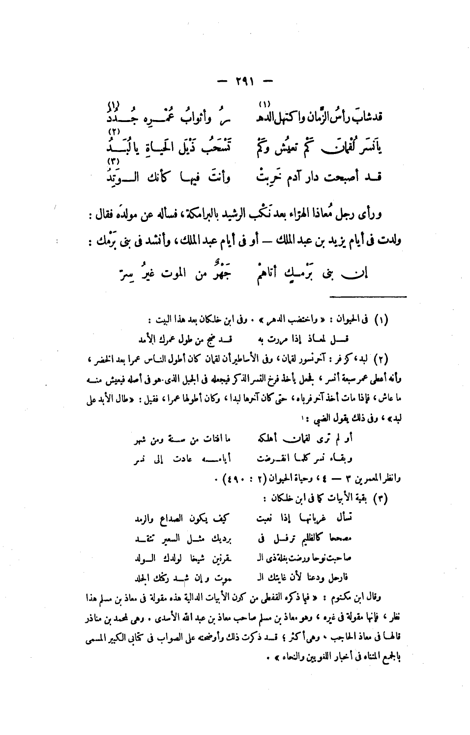 [1] فى الحيوان: «واختضب الدهر». وفى ابن خلكان بعد هذا البيت: