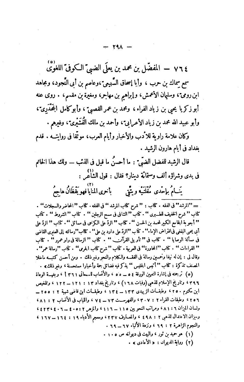 764 - المفضّل بن محمد بن يعلى الضبىّ الكوفىّ اللغوى «1»