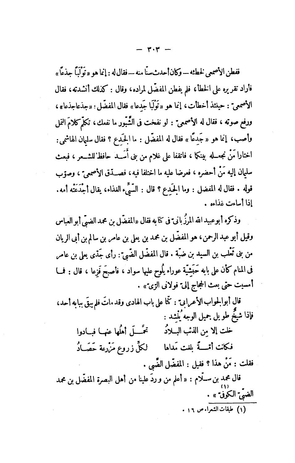فقلت: من هذا؟ فقيل: المفضّل الضّبى.