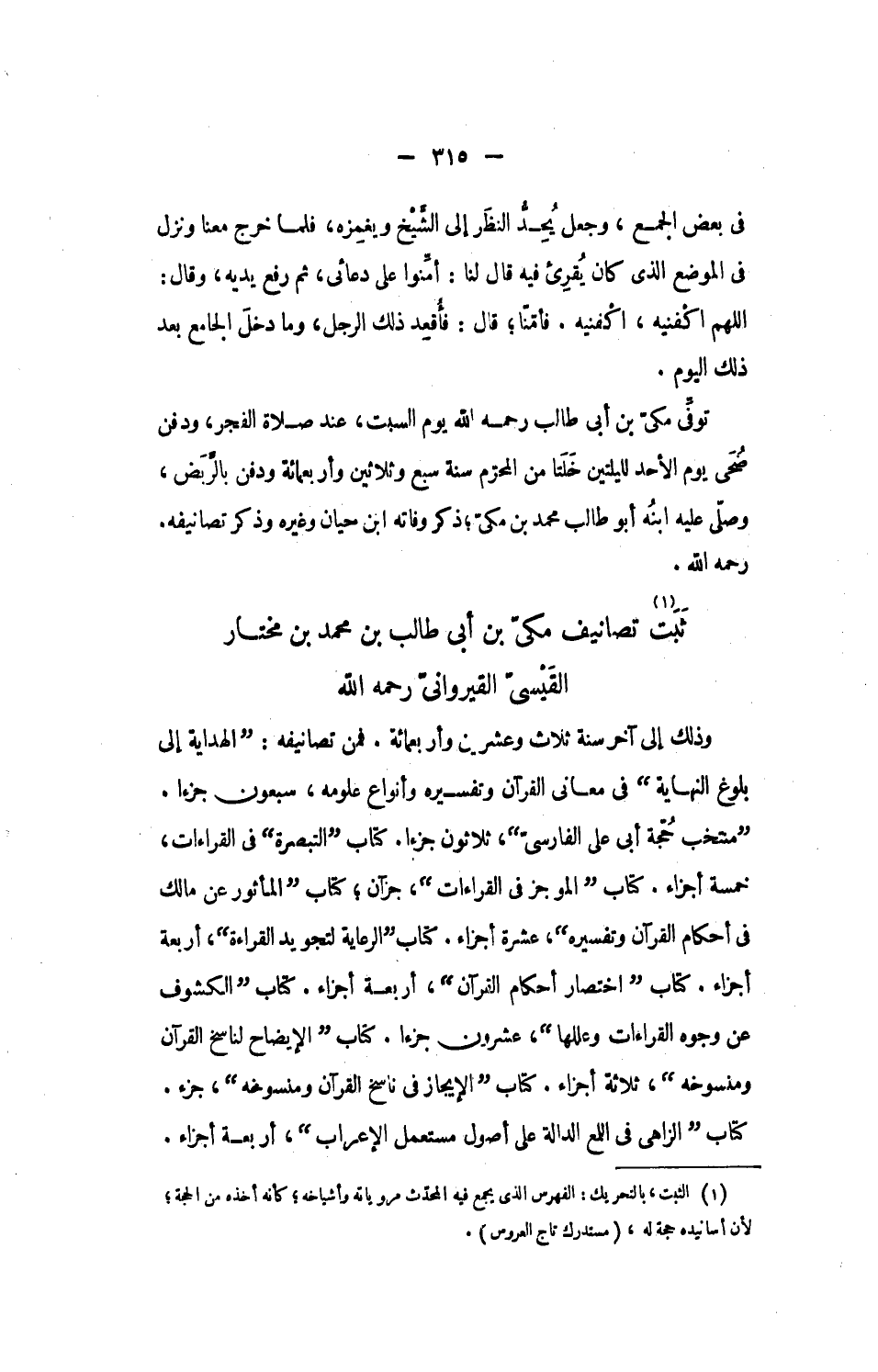 ثبت [1] تصانيف مكىّ بن أبى طالب بن محمد بن مختار القيسىّ القيروانىّ رحمه الله