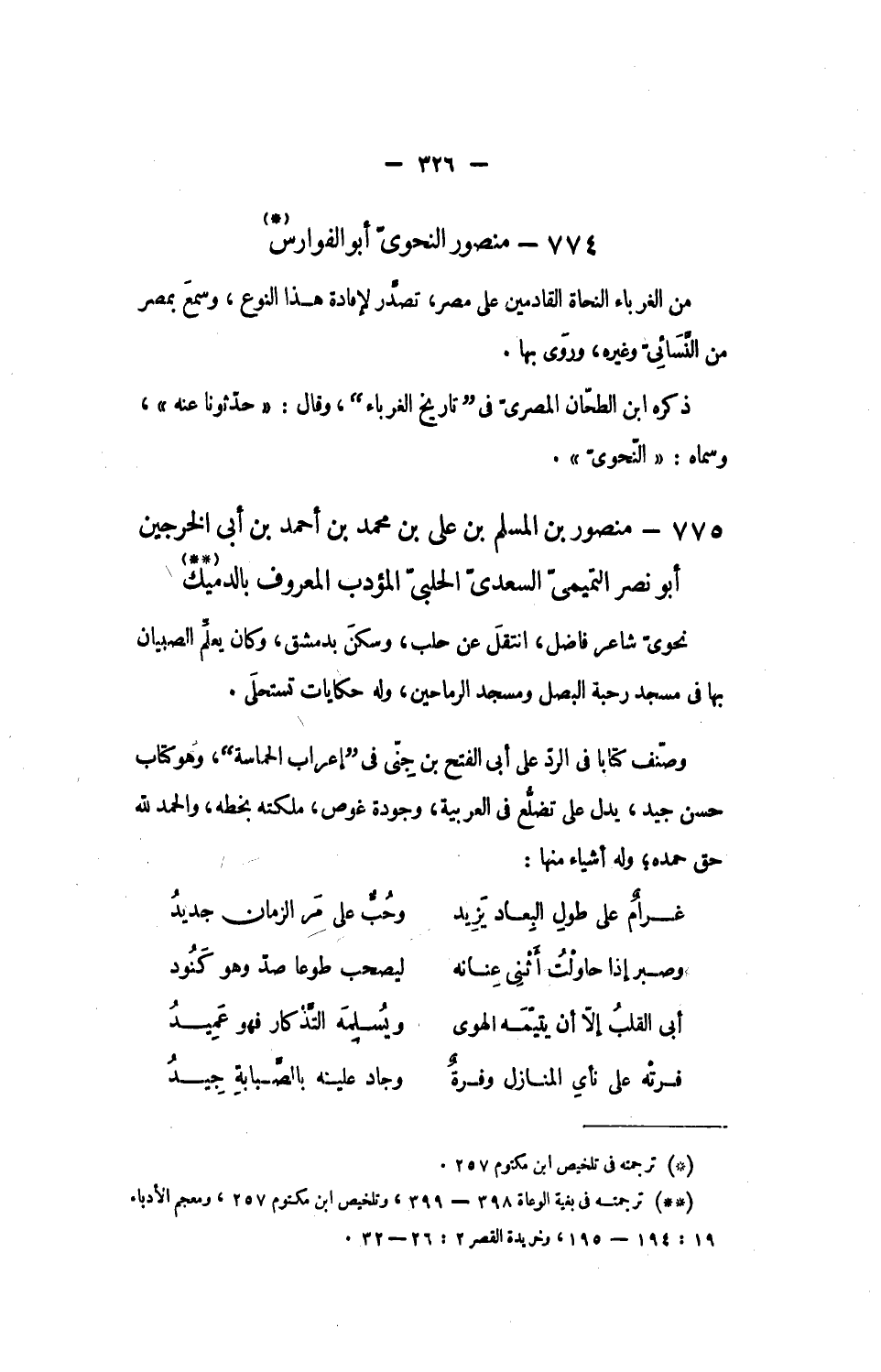 775 - منصور بن المسلم بن على بن محمد بن أحمد بن أبى الخرجين أبو نصر التميمىّ السعدىّ الحلبىّ المؤدب المعروف بالدميك «2»