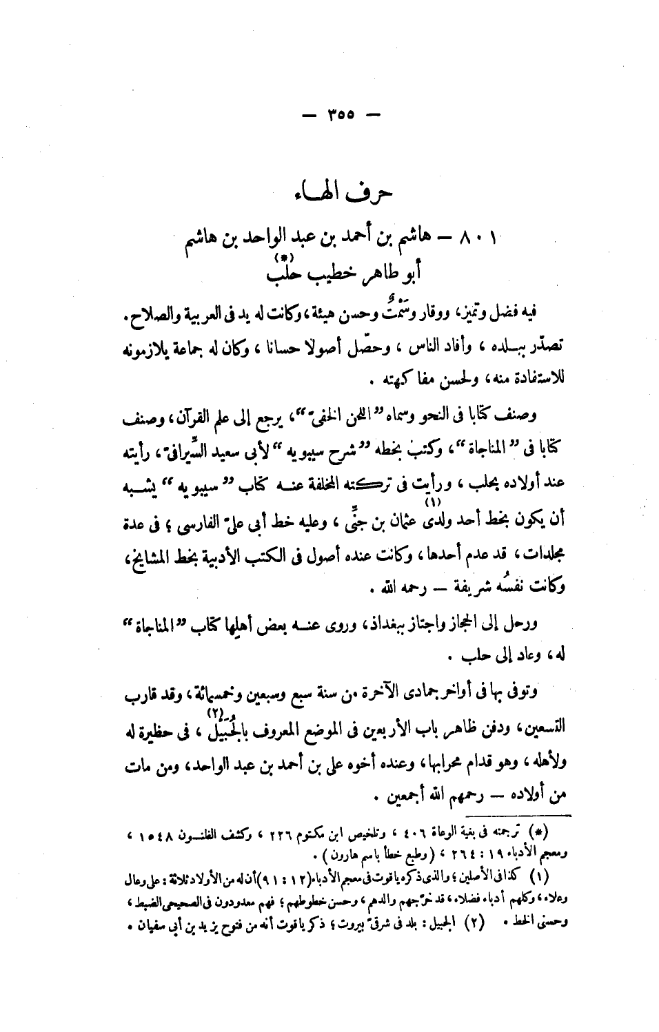 801 - هاشم بن أحمد بن عبد الواحد بن هاشم أبو طاهر خطيب حلب «1»