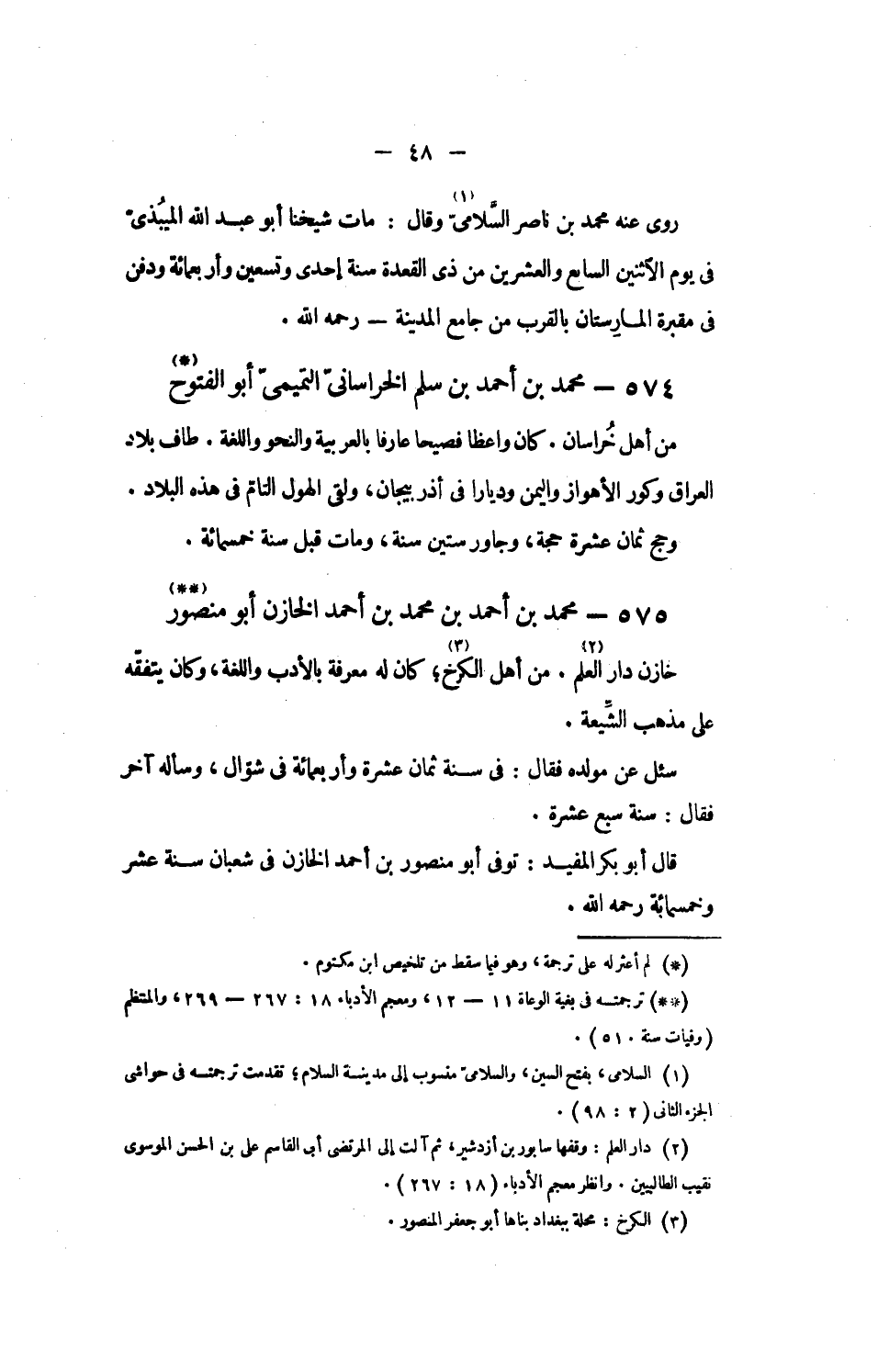 [1] السلامى، بفتح السين، والسلامىّ منسوب إلى مدينة السلام؛ تقدمت ترجمته فى حواشى الجزء الثانى (2: 98).