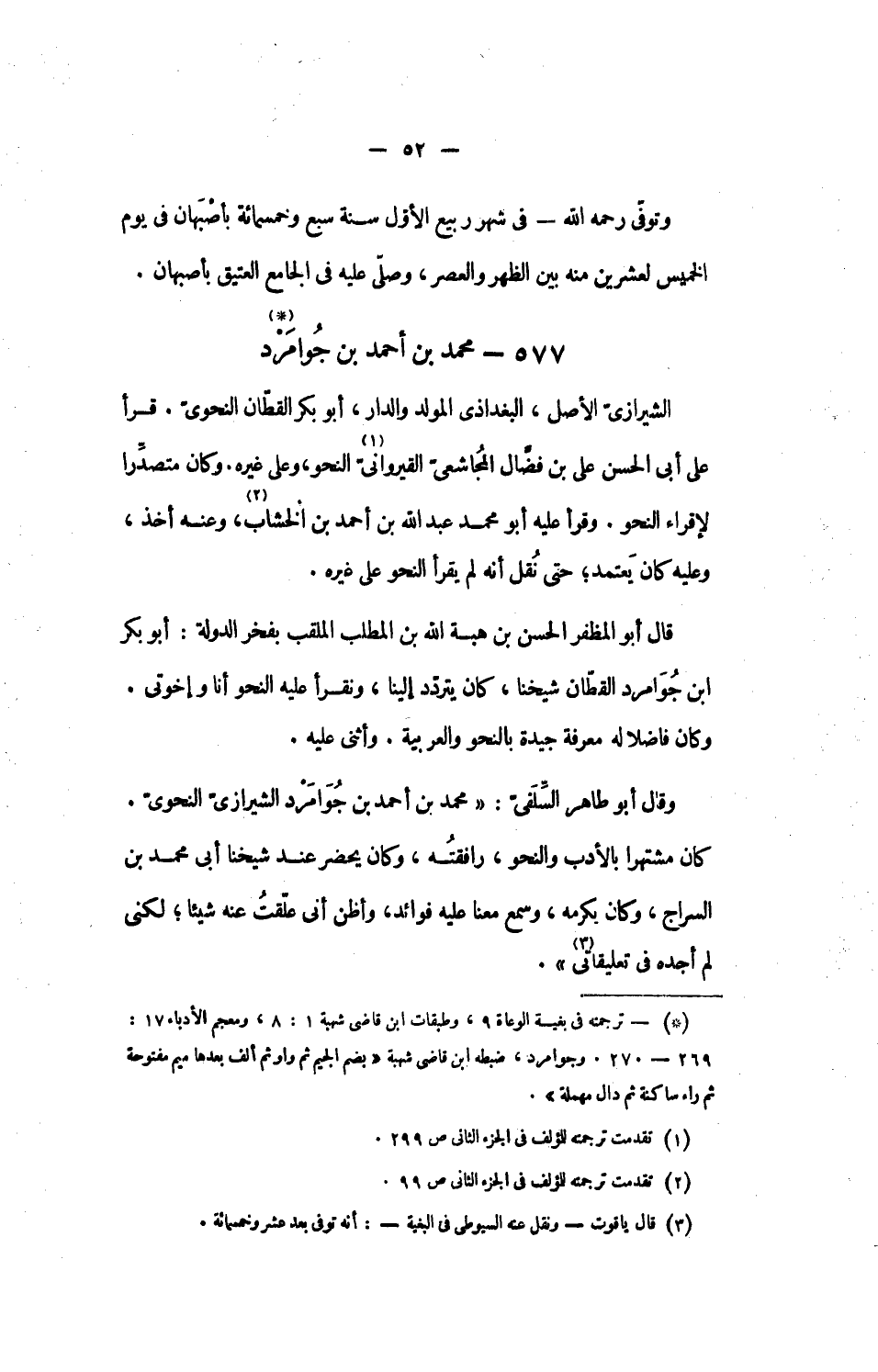 وقال أبو طاهر السّلفىّ: «محمد بن أحمد بن جوامرد الشيرازىّ النحوىّ.
