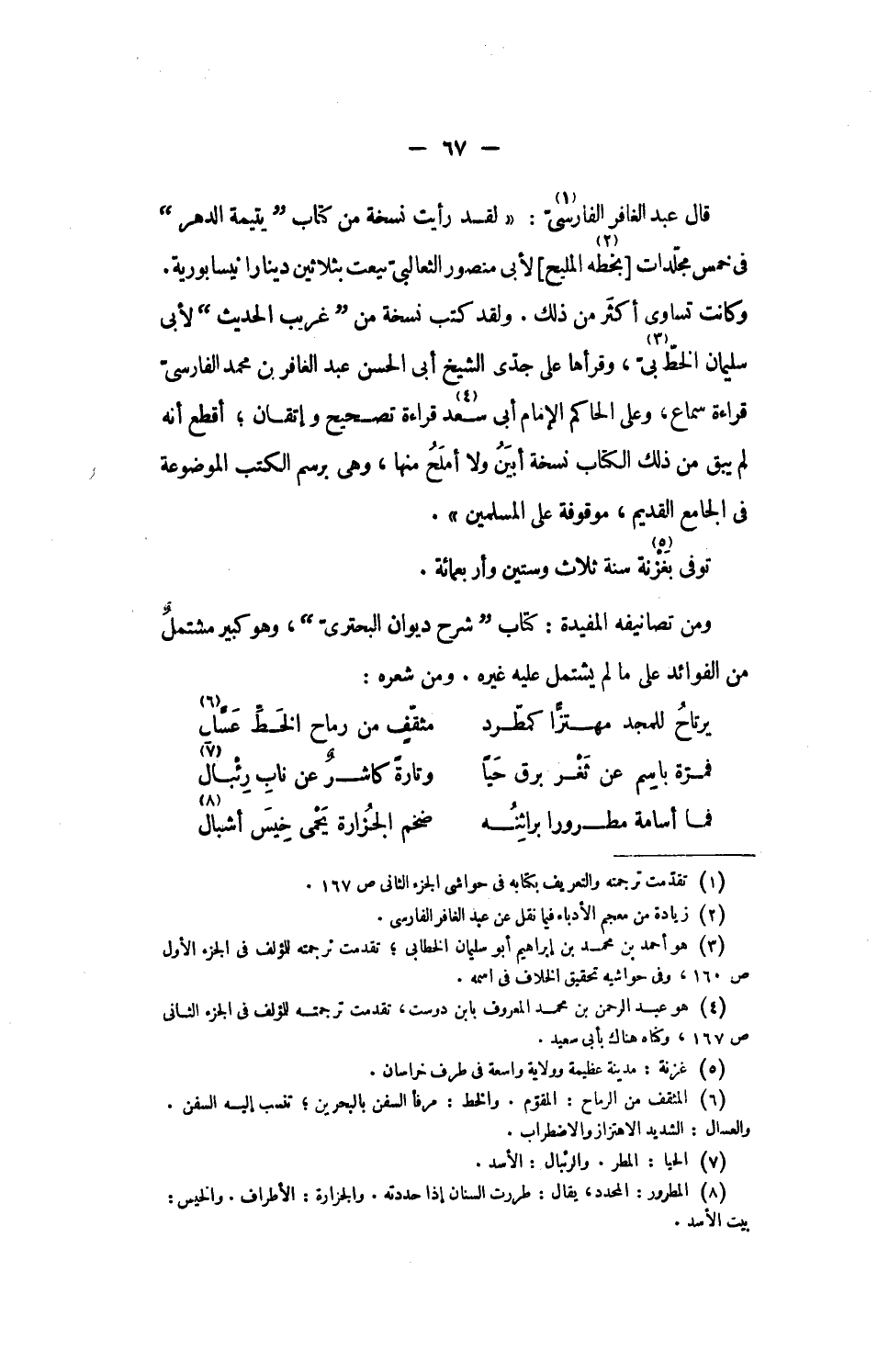 [2] زيادة من معجم الأدباء فيما نقل عن عبد الغافر الفارسى.