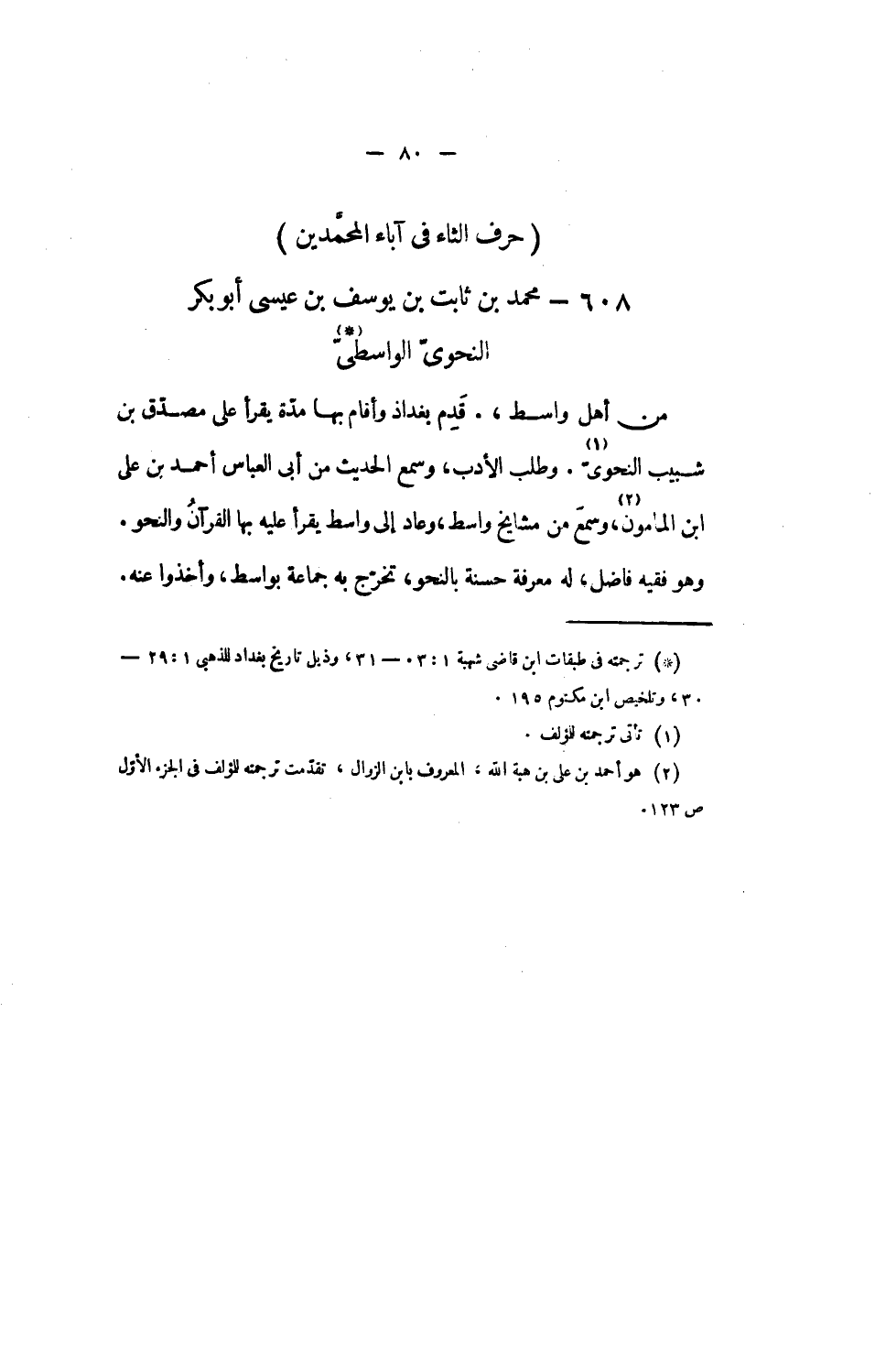 608 - محمد بن ثابت بن يوسف بن عيسى أبو بكر النحوىّ الواسطىّ «1»
