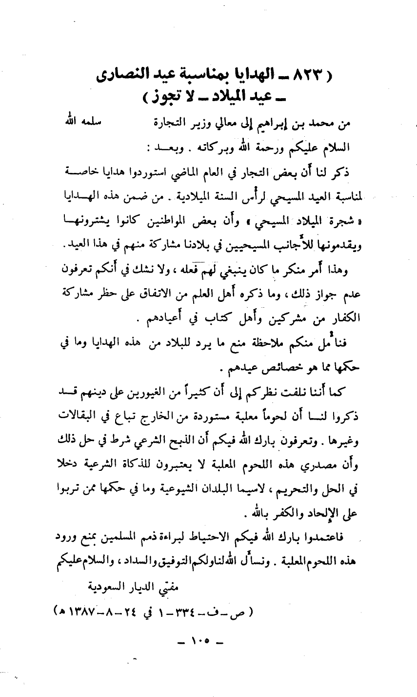فنأمل منكم ملاحظة منع ما يرد للبلاد من هذه الهدايا وما في حكمها مما هو خصائص عيدهم.