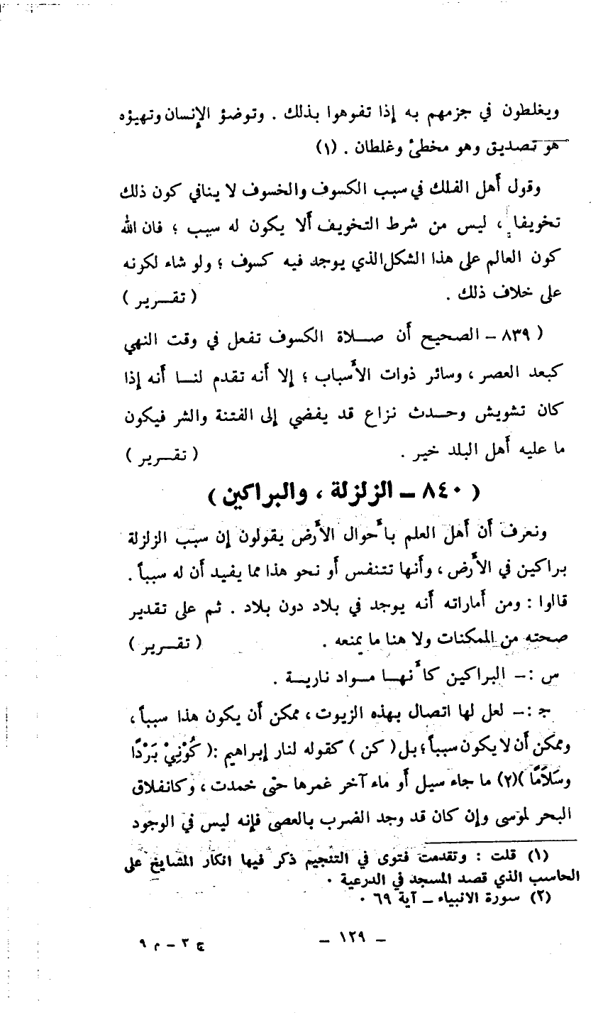(¬1) قلت: وتقدمت فتوى في التنجيم ذكر فيها انكار المشايخ على الحاسب الذي قصد المسجد في الدرعية.
