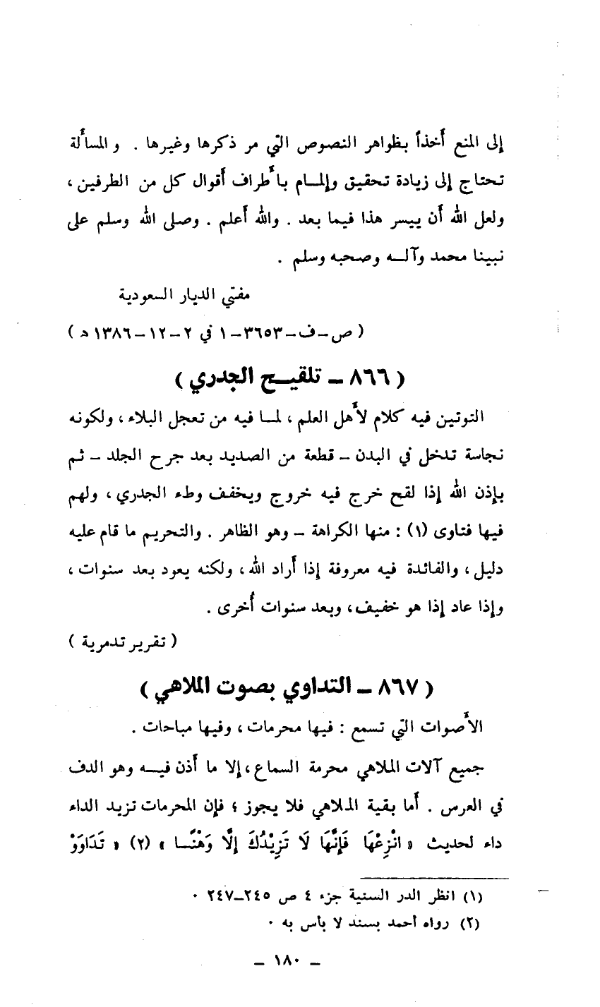(867 ـ التداوى بصوت الملاهي)