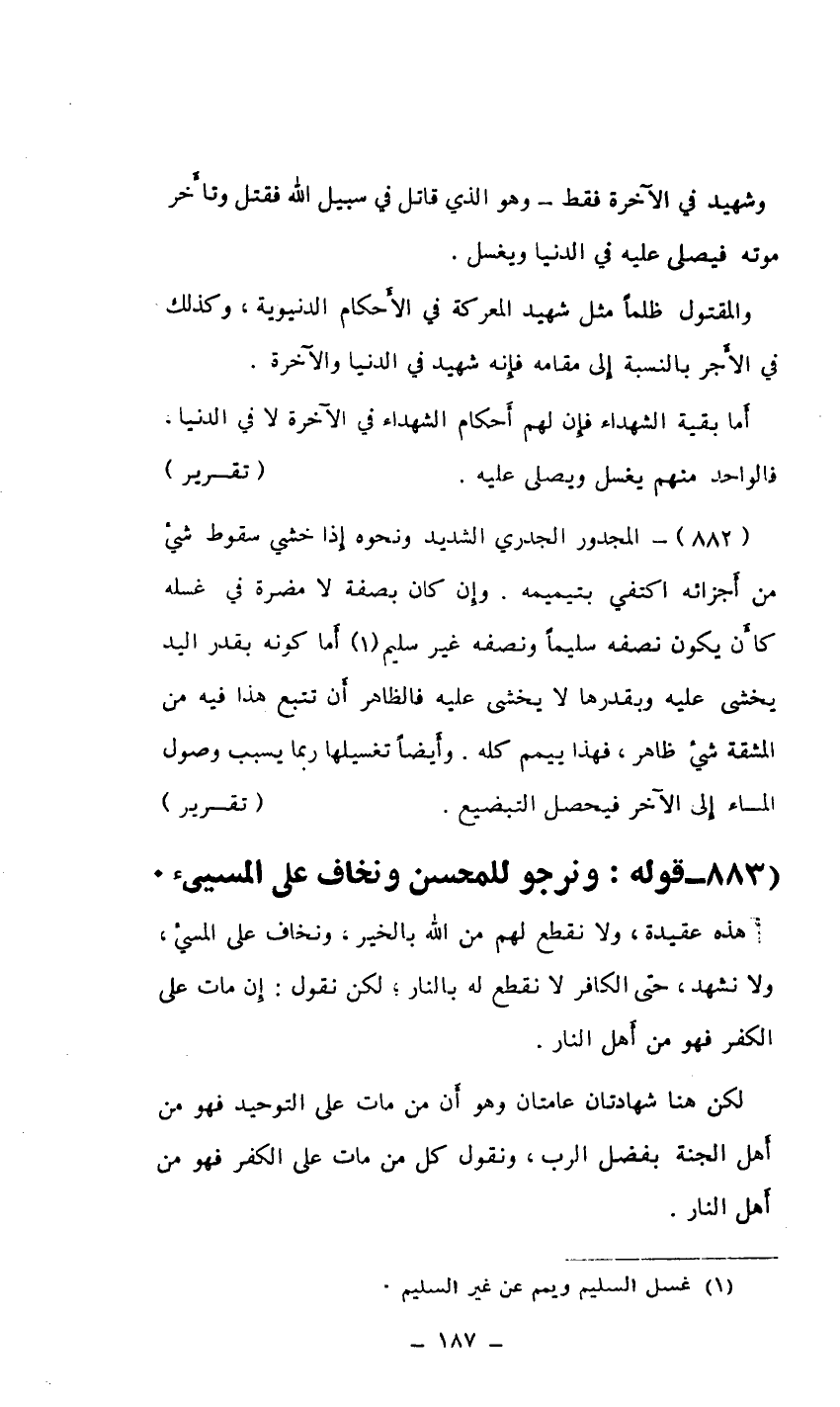 (883 ـ قوله: ونرجو للمحسن ونخاف على المسيء) .