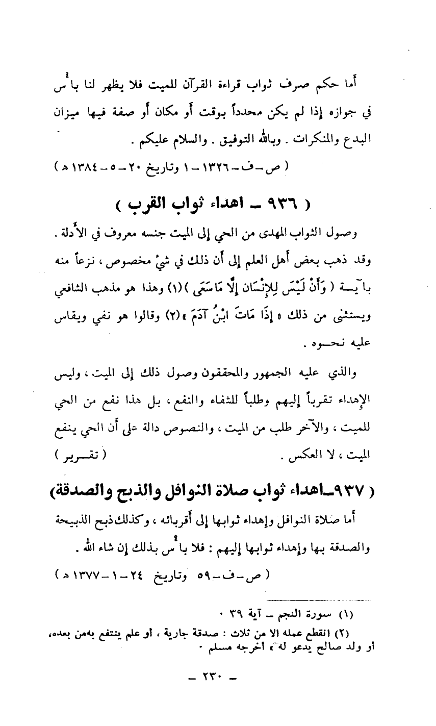 (937 ـ اهداء ثواب صلاة النوافل والذبح والصدقة)
