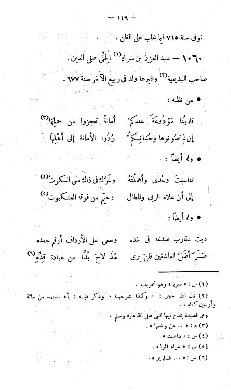 1060 - عبد العزيز بن سرايا (1) الحلّى صفى الدين.