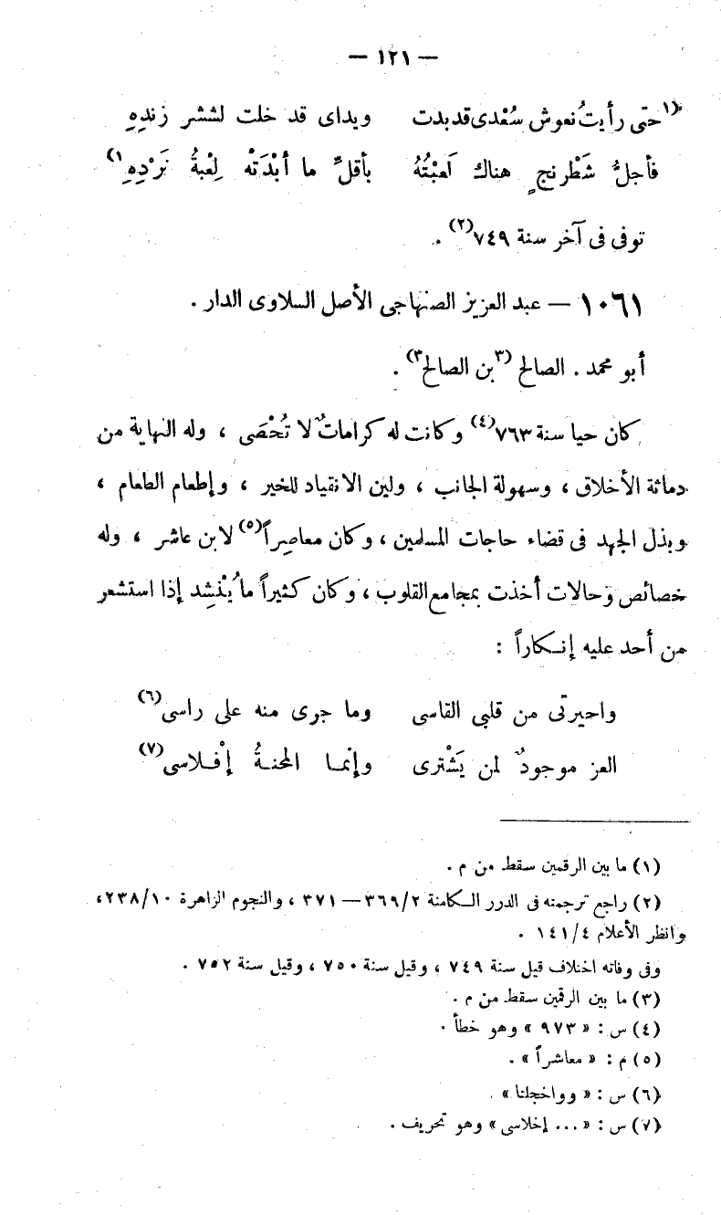 (2) راجع ترجمته في الدرر الكامنة 2/ 369 - 371، والنجوم الزاهرة 10/ 238، وانظر الأعلام 4/ 141. وفي وفاته اختلاف قيل سنة 749، وقيل سنة 750، وقيل سنة 752.