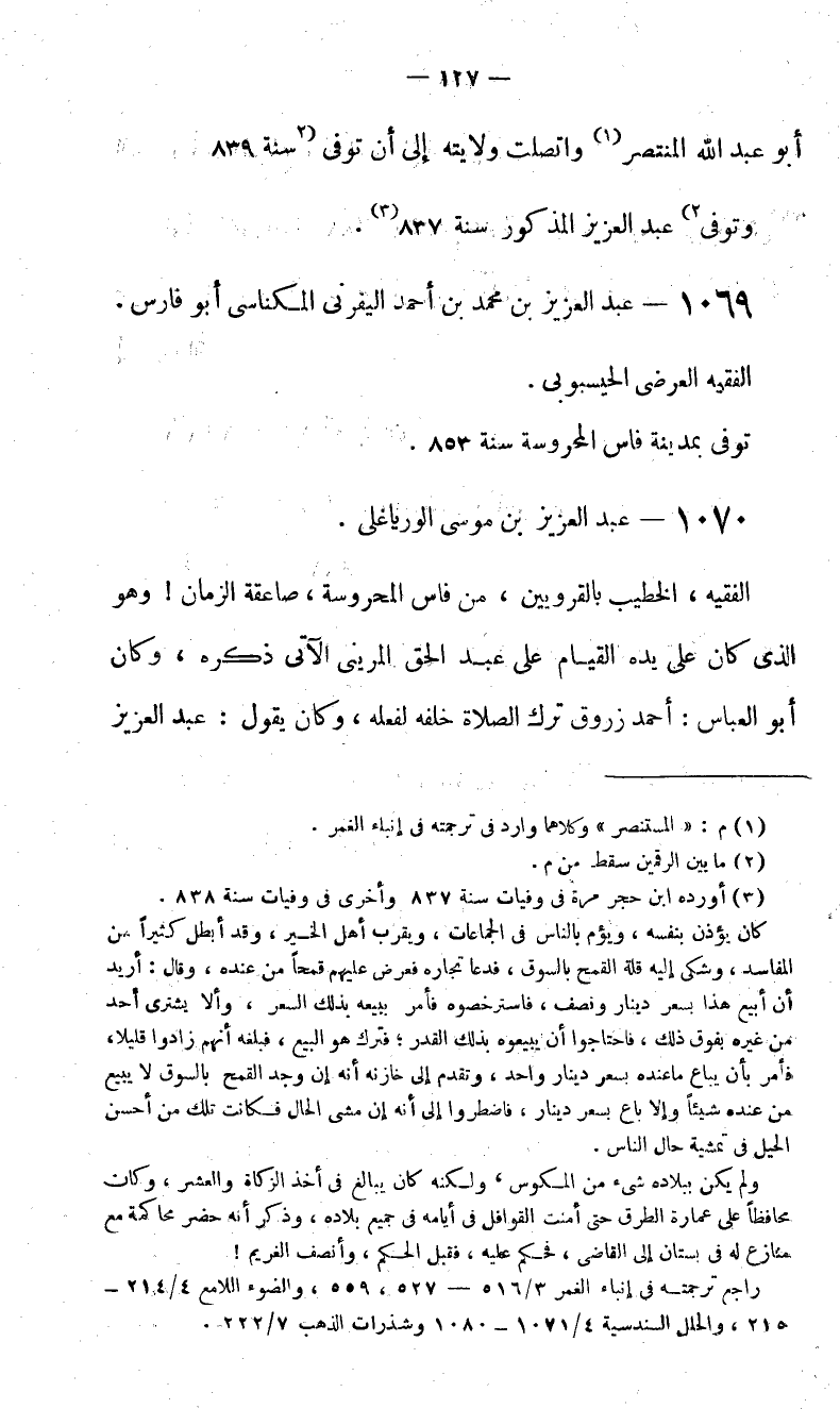وتوفى (2) عبد العزيز المذكور سنة 837 (3).