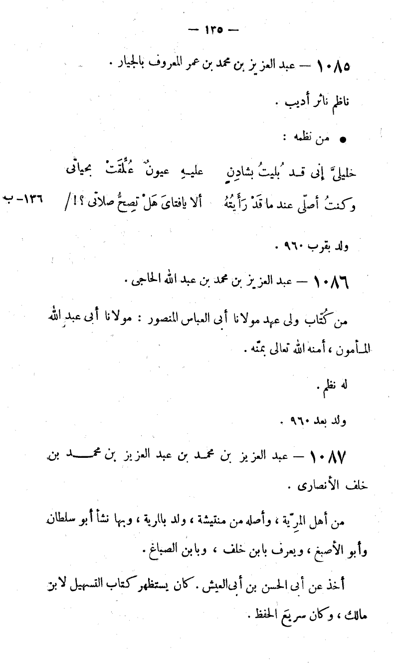 1085 - عبد العزيز بن محمد بن عمر المعروف بالجيار.