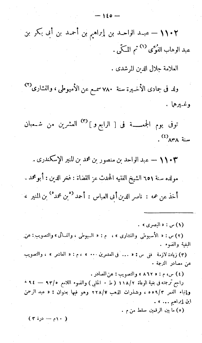 (4) س، م: «862» والتصويب: عن مصادر. راجع ترجمته في بغية الوعاة 2/ 118 (؟ ؟ ؟ ) والضوء اللامع 5/ 93 - 94، وإنباء الغمر 3/ 559، وشذرات الذهب؟ ؟ ؟ وهو فيها بعنوان: «عبد الرحمن ابن إبراهيم. . .».