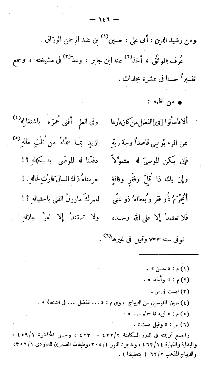 توفى سنة 733 وقيل في غيرها (6).
