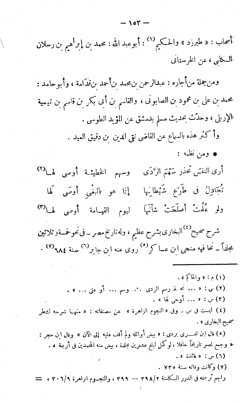 (7) وكانت وفاته سنة 735. راجع ترجمته في الدرر الكامنة 2/ 398 - 399، والنجوم الزاهرة 9/ 306، -