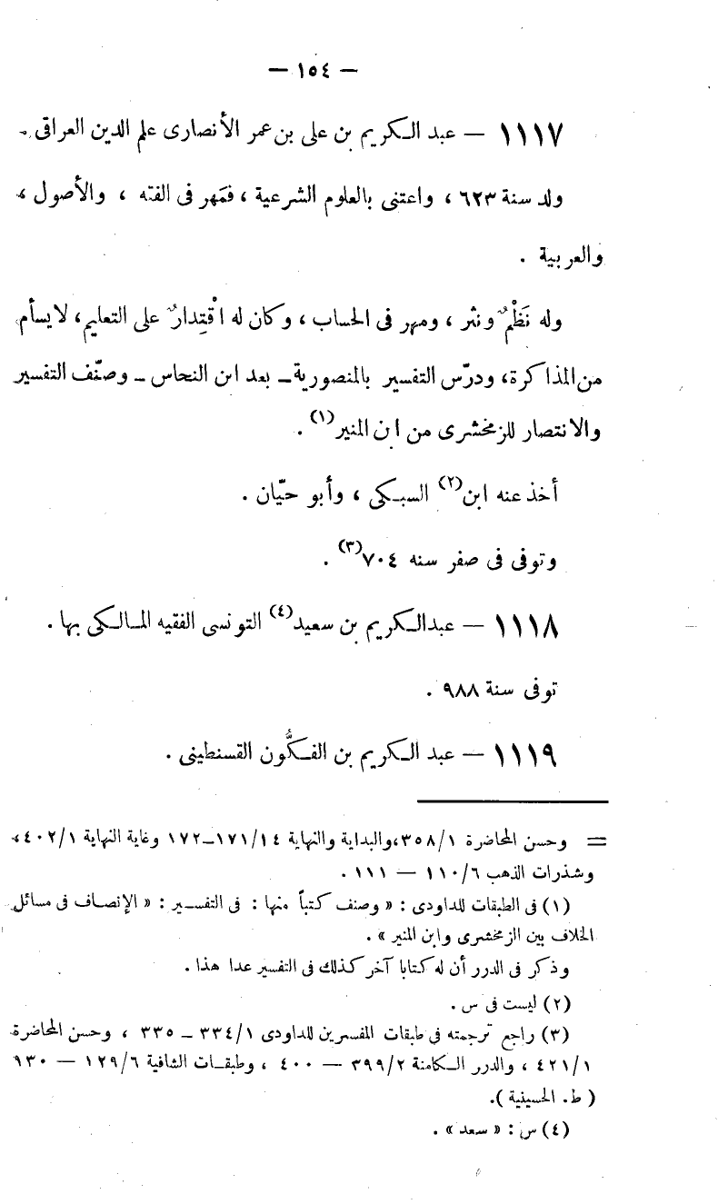 1118 - عبد الكريم بن سعيد (4) التونسى الفقيه المالكى بها.