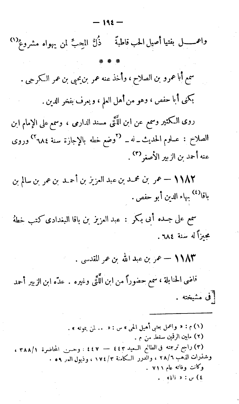 (3) راجع ترجمته في الطالع السعيد 443 - 447: وحسن المحاضرة 1/ 388، وشذرات الذهب 6/ 28، والدرر الكامنة 3/ 174، وذيول العبر 59. وكانت وفاته عام 711.