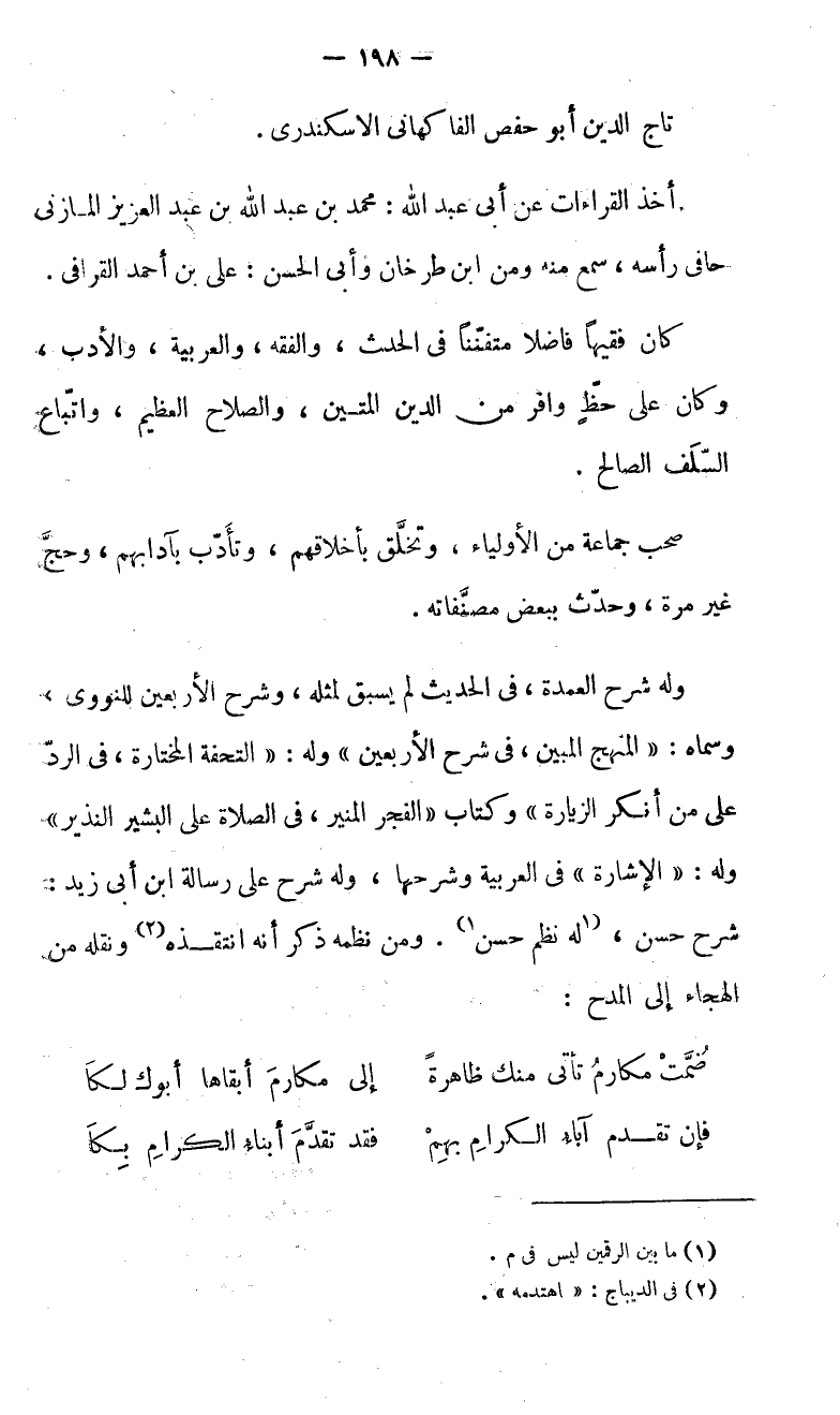 تاج الدين أبو حفص الفاكهانى الاسكندرى.