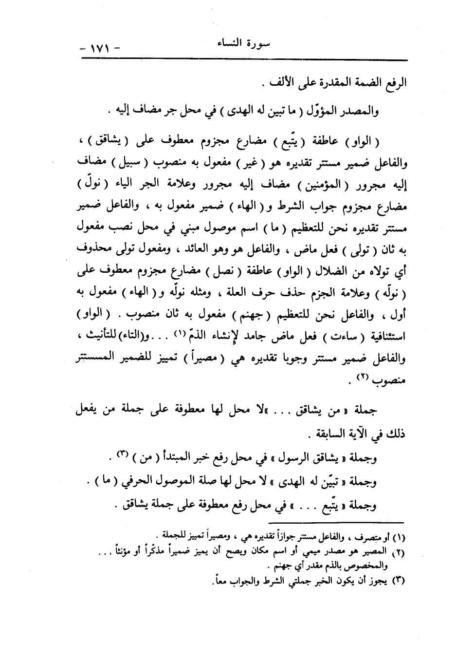 (مصدّقا) حال منصوبة من يحيى (بكلمة) جارّ ومجرور متعلّق باسم الفاعل (مصدّقا) «1» ، (من الله) جارّ ومجرور متعلّق بمحذوف نعت لكلمة (الواو) عاطفة (سيّدا) معطوفة على (مصدّقا) منصوب مثله وكذلك (حصورا، نبيّا) معطوفان بحرفي العطف منصوبان (من الصالحين) جارّ ومجرور متعلّق بمحذوف نعت ل (نبيّا) ، وعلامة الجرّ الياء.