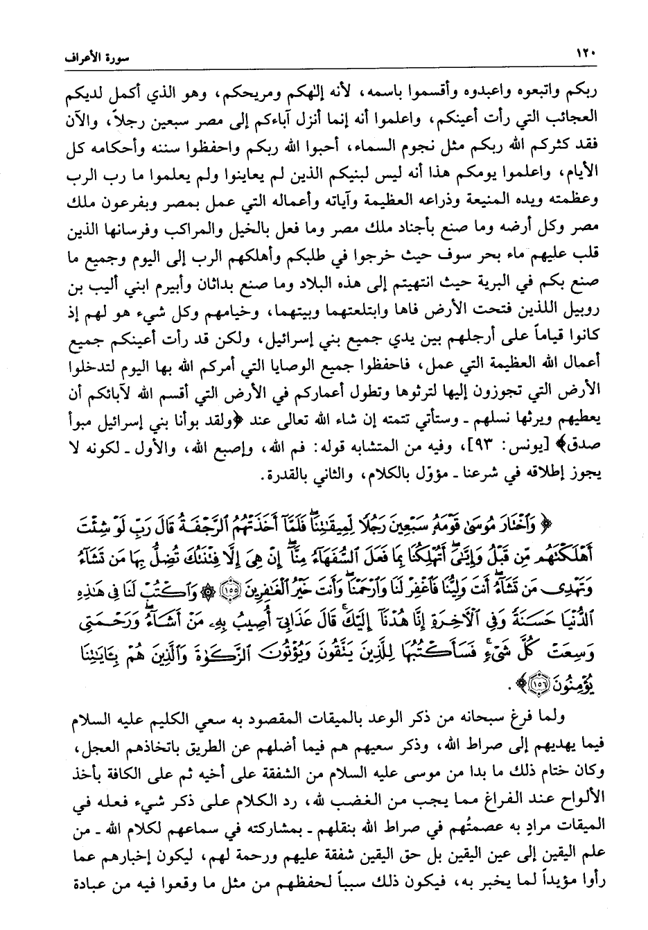 ) وَاخْتَارَ مُوسَى قَوْمَهُ سَبْعِينَ رَجُلاً لِّمِيقَاتِنَا فَلَمَّا أَخَذَتْهُمُ الرَّجْفَةُ قَالَ رَبِّ لَوْ شِئْتَ أَهْلَكْتَهُمْ مِّن قَبْلُ وَإِيَّايَ أَتُهْلِكُنَا بِمَا فَعَلَ السُّفَهَآءُ مِنَّآ إِنْ هِيَ إِلاَّ فِتْنَتُكَ تُضِلُّ بِهَا مَن تَشَآءُ وَتَهْدِي مَن تَشَآءُ أَنتَ وَلِيُّنَا فَاغْفِرْ لَنَا وَارْحَمْنَا وَأَنتَ خَيْرُ الْغَافِرِينَ وَاكْتُبْ لَنَا فِي هَذِهِ الدُّنْيَا حَسَنَةً وَفِي الآخِرَةِ إِنَّا هُدْنَآ إِلَيْكَ قَالَ عَذَابِي أُصِيبُ بِهِ مَنْ أَشَآءُ وَرَحْمَتِي وَسِعَتْ كُلَّ شَيْءٍ فَسَأَكْتُبُهَا لِلَّذِينَ يَتَّقُونَ وَيُؤْتُونَ الزَّكَاةَ وَالَّذِينَ هُم بِآيَاتِنَا يُؤْمِنُونَ ( ( )