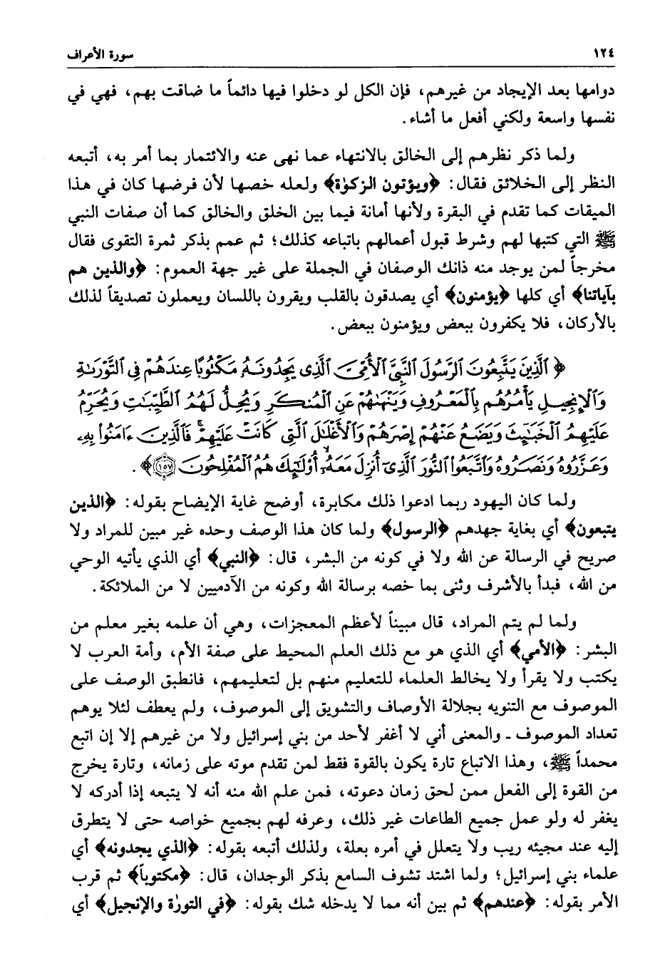 ) الَّذِينَ يَتَّبِعُونَ الرَّسُولَ النَّبِيَّ الأُمِّيَّ الَّذِي يَجِدُونَهُ مَكْتُوباً عِندَهُمْ فِي التَّوْرَاةِ وَالإِنْجِيلِ يَأْمُرُهُم بِالْمَعْرُوفِ وَيَنْهَاهُمْ عَنِ الْمُنْكَرِ وَيُحِلُّ لَهُمُ الطَّيِّبَاتِ وَيُحَرِّمُ عَلَيْهِمُ الْخَبَآئِثَ وَيَضَعُ عَنْهُمْ إِصْرَهُمْ وَالأَغْلاَلَ الَّتِي كَانَتْ عَلَيْهِمْ فَالَّذِينَ آمَنُواْ بِهِ وَعَزَّرُوهُ وَنَصَرُوهُ وَاتَّبَعُواْ النُّورَ الَّذِي أُنزِلَ مَعَهُ أُوْلَئِكَ هُمُ الْمُفْلِحُونَ ( ( )