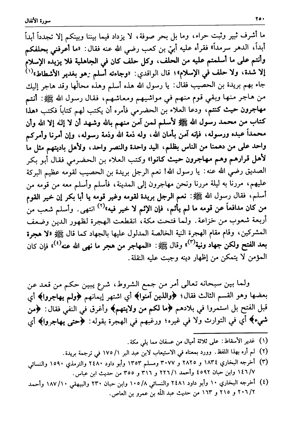 ما أشرف ثبير حراء وما بل بحر صوفة ، لا يزداد فيما بينهما وبينكم إلا تجدداً أبداً ابداً ، الدهر سرمداً ) فقرأة عليه أبّي بن كعب رضي الله عنه فقال : ( ما أعرفني بحلفكم وأنتم على ما اسلمتم عليه من الحلف ، وكل حلف كان في الجاهلية فلا يزيده الإسلام إلا شدة ولا حلف في الإسلام ) ؛ قال الواقدي : ( وجاءته أسلم هو بغدير الأشطاط ) جاء بهم بريده بن الحصيب فقال : يارسول الله هذه أسلم وهذه محالّها وقد هاجر إليك من هاجر منها وبقي قوم منهم في مواشيهم ومعاشهم ، فقال النبي صلى اله عليه وسلم : ( أنتم مهاجرون حيث كنتم ) ودعاء العلاء بن الحضرمي فأمره أن يكتب لهم كتاباً فكتب ( هذا كتاب من محمد رسول الله ( صلى الله عليه وسلم ) لأسلم آمن منهم بالله وشهد أن لا إله إلا الله وأن محمداً عبده ورسوله ، فإنه آمنبامان الله ، وله ذمة الله وذمة رسوله ، وإن أمرنا وأمركم واحد على من دهمنا من الناس بظلم ، اليد واحدة والنصر واحد ، ولأهل باديتهم مثل ما لأهل قرارهم وهم مهاجرون حيث كانوا ) زكتب العلاء بن الحضرمي فقال أبو بكر الصديق رضي الله عنه : يا رسول الله نعم الرجل بريدة بن الحصيب لقومه عظيم البركه أسلم ، فقال رسول الله ( صلى الله عليه وسلم ) : ( نعم الرجل بريده لقومه وغير قومه يا أبا بكر إن خير القوم من كان مدافعاً عن قومه ما لم يأثم ، فإنة الإثم لا خير فيه ) انتهى. وأسلم معه منقومه من ألابعة شعوب من خزاعة .