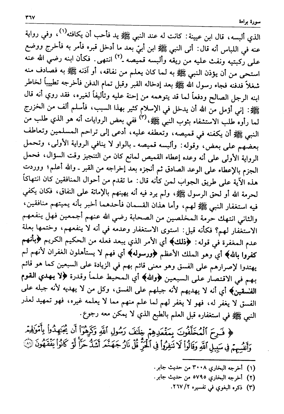 ) فَرِحَ الْمُخَلَّفُونَ بِمَقْعَدِهِمْ خِلاَفَ رَسُولِ اللَّهِ وَكَرِهُواْ أَن يُجَاهِدُواْ بِأَمْوَالِهِمْ وَأَنْفُسِهِمْ فِي سَبِيلِ اللَّهِ وَقَالُواْ لاَ تَنفِرُواْ فِي الْحَرِّ قُلْ نَارُ جَهَنَّمَ أَشَدُّ حَرّاً لَّوْ كَانُوا يَفْقَهُونَ