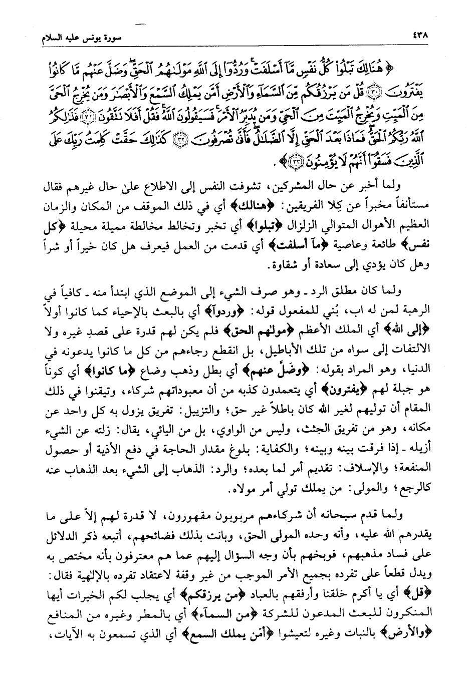 يونس : ( 30 - 33 ) هنالك تبلو كل. .. . .