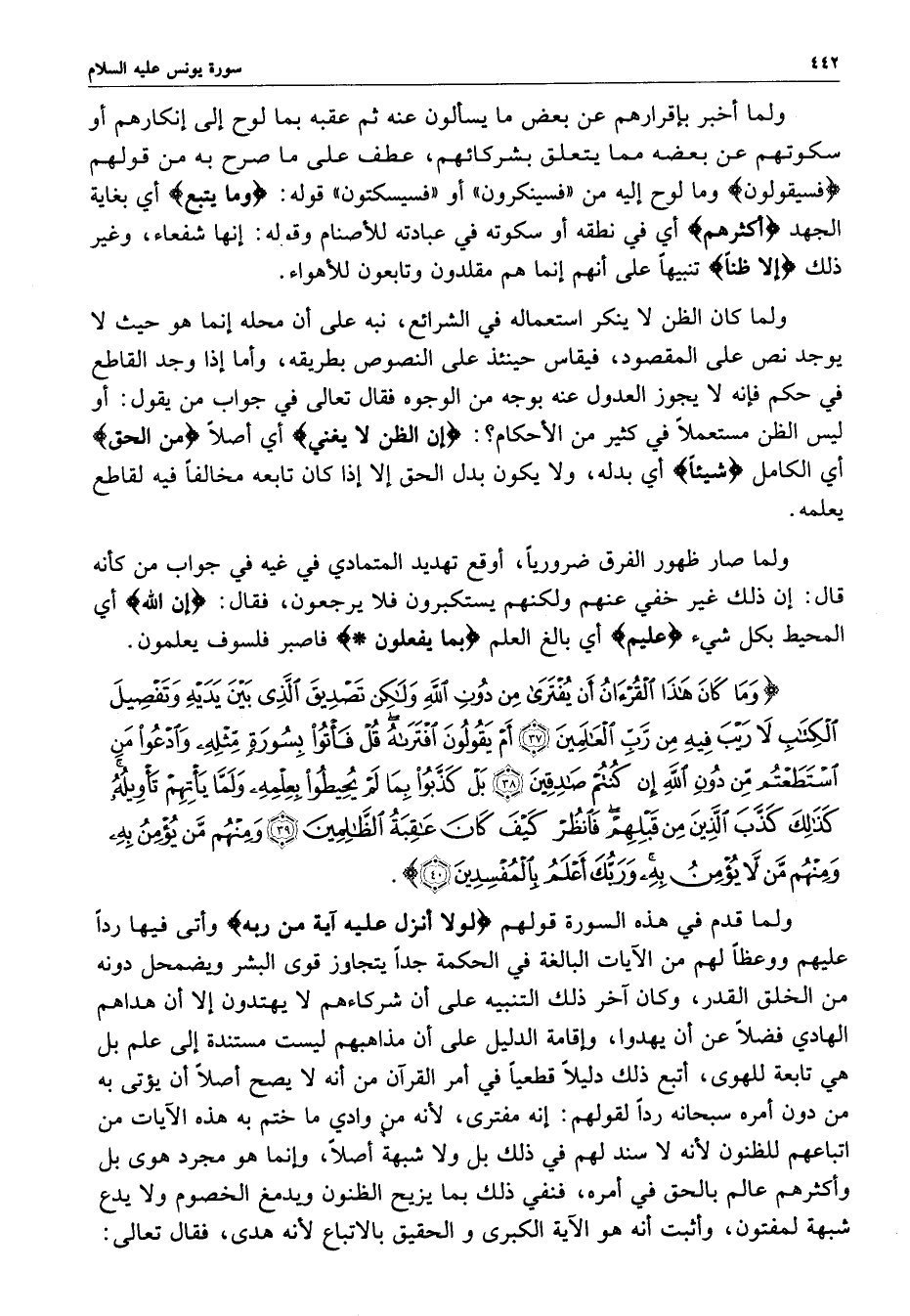 ) وَمَا كَانَ هَذَا الْقُرْآنُ أَن يُفْتَرَى مِن دُونِ اللَّهِ وَلَكِن تَصْدِيقَ الَّذِي بَيْنَ يَدَيْهِ وَتَفْصِيلَ الْكِتَابِ لاَ رَيْبَ فِيهِ مِن رَّبِّ الْعَالَمِينَ أَمْ يَقُولُونَ افْتَرَاهُ قُلْ فَأْتُواْ بِسُورَةٍ مِّثْلِهِ وَادْعُواْ مَنِ اسْتَطَعْتُمْ مِّن دُونِ اللَّهِ إِن كُنتُمْ صَادِقِينَ بَلْ كَذَّبُواْ بِمَا لَمْ يُحِيطُواْ بِعِلْمِهِ وَلَمَّا يَأْتِهِمْ تَأْوِيلُهُ كَذَلِكَ كَذَّبَ الَّذِينَ مِن قَبْلِهِمْ فَانْظُرْ كَيْفَ كَانَ عَاقِبَةُ الظَّالِمِينَ وَمِنهُمْ مَّن يُؤْمِنُ بِهِ وَمِنْهُمْ مَّن لاَّ يُؤْمِنُ بِهِ وَرَبُّكَ أَعْلَمُ بِالْمُفْسِدِينَ ( ( )