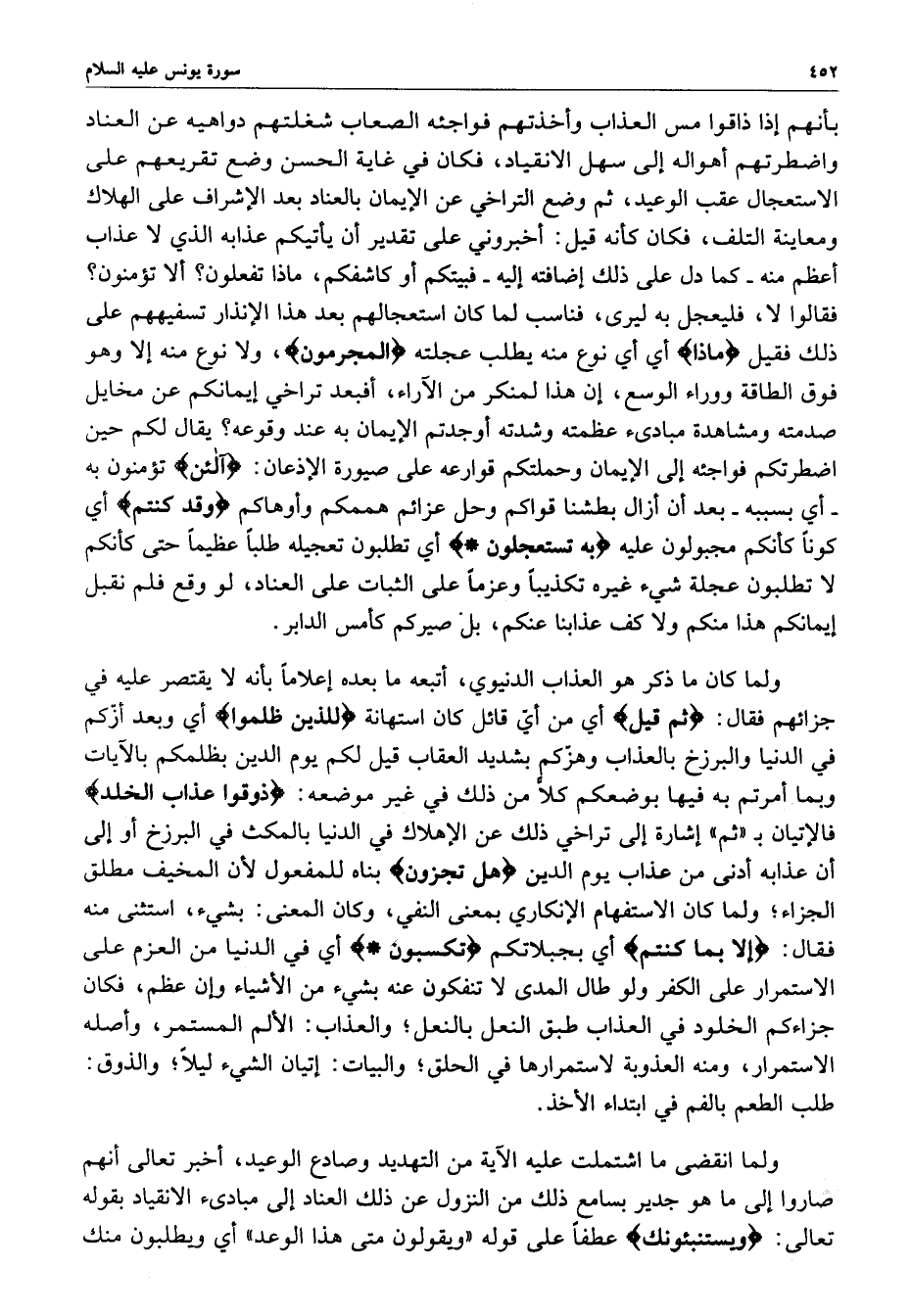 بأنهم إذا ذاقوا مس العذاب وأخذتهم فواجئه الصعاب شغلتهم دواهيه عن العناد واضطرتهم أهواله إلى سهل الانقياد ، فكان في غاية الحسن وضع تقريعهم على الاستعجال عقب الوعيد ، ثم وضع التراخي عن الإيمان بالعناد بعد الإشراف على الهلاك ومعانيه التلف ، فكان كأنه قيل : أخبروني على تقدير ان يأتيكم عذابه الذي لا عذاب أعظم منه - كما دل ذلك إضافته إليه - فبيتكم أو كاشفكم ، ما تفعلون ؟ ألا تؤمنون ؟ فقالوا لا ، فليعجل به ليرى ، فناسب لما كان استعجالهم بعد هذا الإنذار تسفيههم على ذلك فقيل ) ماذا ) أي أي نوع منه يطلب عجلته ) المجرون ( ، ولا نوع منه الإ وهو فوق الطاقة ووراء الوسع ، إن هذا لمنكر من الآراء ، أفبعد تراخي إيمانكم عن مخايل صدمته ومشاهدة مبادئ عظمته وشدته أوجدتم الإيمان به عند وقوعه ؟ يقال لكم حين اضطرتكم فواجئه إلى الإيمان وحملتكم قوارعه على صيورة الإذعان : ( آلئن ( تؤمنون به - أي بسببه - بعد أن أزال بطشاً قواكم وحل عزائم هممكم وأوهاكم ) وقد كنتم ) أي كوناً كأنكم مجبولون عليه ) به يستعجلون ) أي تطلبون تعجيله طلباً عظيماً حتى كأنكم لاتطلبون عجله شيء غيره تكذيباً وعزماً علىالثبات على العناد ، لو وقع فلم نقبل إيمانكم هذا منكم ولا كف عذابنا عنكم ، بل صيركم كأمس الدابر .