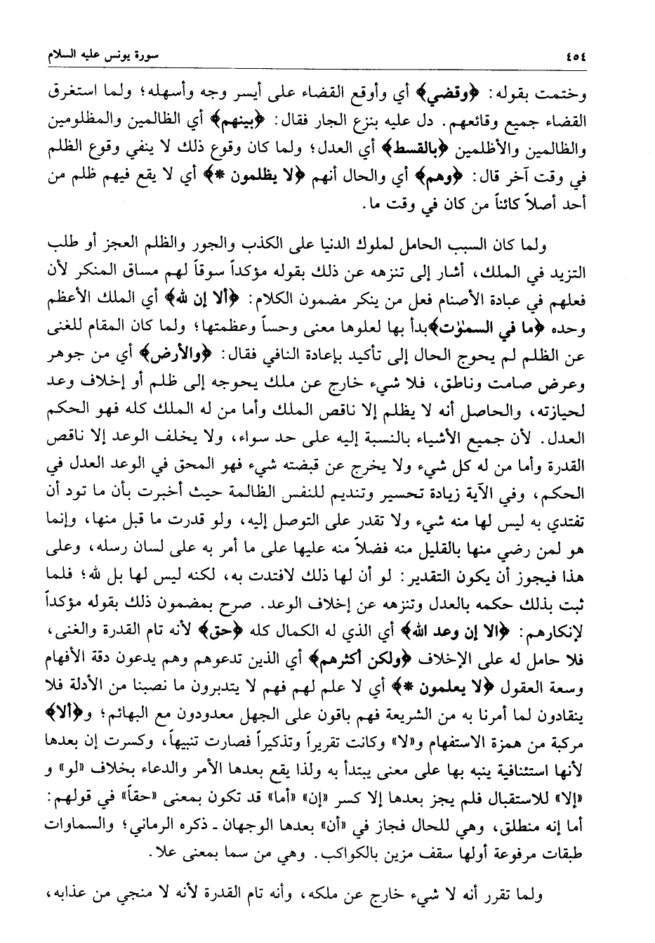 صرح بمضمون ذلك بقوله مؤكداً لإنكارهم : ( الا إن وعد الله ) أي الذي له الكمال كله ) حق ( لنه تام القدرة والغنى ، فلا حامل له على الإخلاف ) ولكن أكثرهم ( اي الذين تدعوهم وهم يدعون دقة الأفهام وسعة العقول ) لا يعلمون ) أي لا علم لهم فهم لا يتدبرون ما نصبنا من الأدلة فلا ينقادون لما أمرنا به االشريعة فهم باقون على الجهل معدودون مع البهائم ؛ و ) ألا ( مركبة من همزة الاستفهام و ( لا ) وكانت تقريراً وتذكيراً فصارت تنبيهاً ، وكسرت إن بعدها لأنها استئنافيه ينبه بها على معنى يبتدأ به ولذا يقع بعدها الأمر والدعاء بخلاف ( لو ) و ( إلا ) للاستقبال فلم يجز بعدها إلا كسر ( إن ) ( إما ) قد تكون بمعنى ( حقاً ) في قولهم : أما إنه منطلق ، وهي للحال فجاز في ( أن ) بعدها الوجهان - ذكره الرماني ؛ السماوات طبقات مرفوعه اولها سقف مزين بالكواكب. وهي من سما بمعنى علاز ولما تقرر أنه لا شيء خارج عن ملكه ، وأنه تام القدرة لأنه لا منجي من عذابه ،