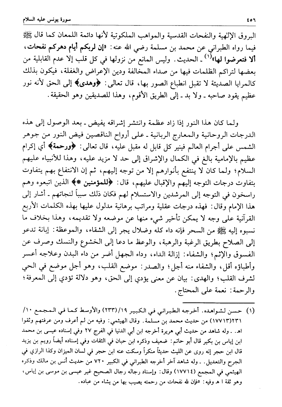 البروق الإلهية والنفخات القدسية والمواهب الملكوتية لأنها اللمعان كما قال صلى اله عليه وسلم فيما رواه الطبراني عن محمد بن مسلمة رضي الله عنه : ( إن لربكم أيام دهركم نفحات ، ألا فعترضوا له ) الحديث. وليس المانع من نزولها في كل قلب إلا عدم القابلية من بعضها لتراكم الظلمات فيها من صداء المخالفة ودين الإعراض والغفلة ، فيكون بذلك كالمرايا الصديئة لا تقبل انطباع الصور بها ، قال تعالى : ( وهدى ( إلى الحق لأنه نور عظيم يقود صاحبه - ولابد - إلى الطريق الأقوم ، وهذا للصديقين وهو الحقيقة .