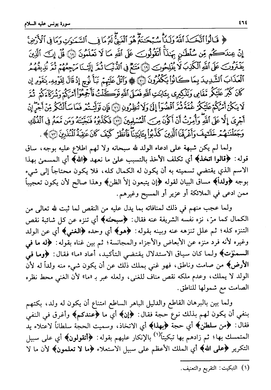 يونس : ( 68 - 73 ) قالوا اتخذ الله. .. . .
