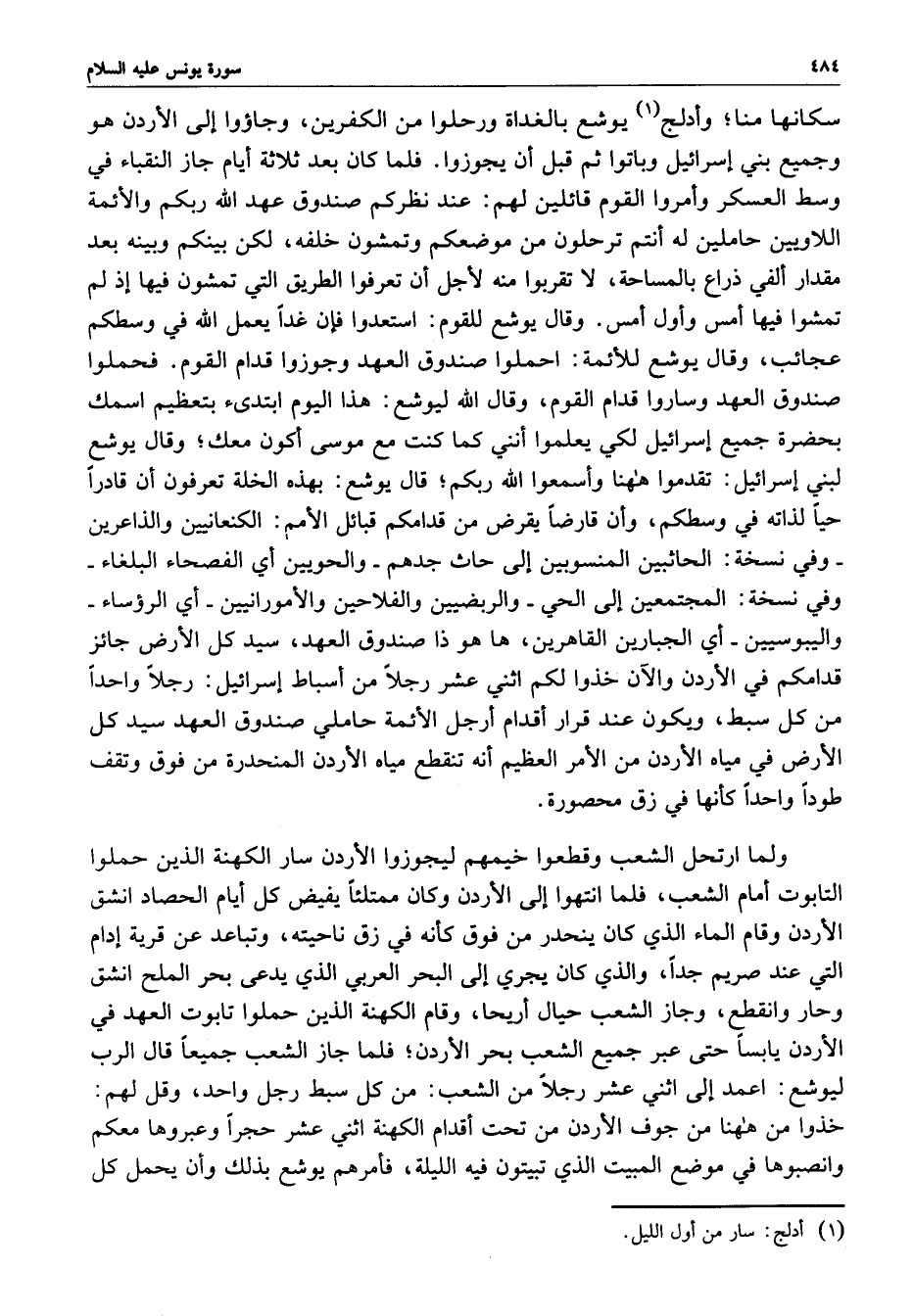ساكانها منا ؛ وأدلج يوشع بالغداة ورحلوا من الكفرين ، وجاؤوا إلى الأردن هو وجميع بني إسرائيل وباتوا ثم قبل أن يجوزوا .