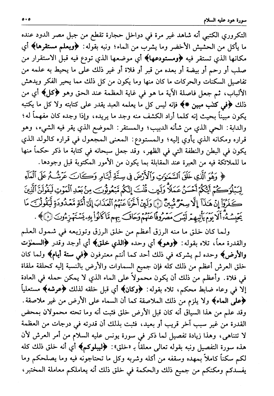 ) وَهُوَ الَّذِي خَلَق السَّمَاوَاتِ وَالأَرْضَ فِي سِتَّةِ أَيَّامٍ وَكَانَ عَرْشُهُ عَلَى الْمَآءِ لِيَبْلُوَكُمْ أَيُّكُمْ أَحْسَنُ عَمَلاً وَلَئِن قُلْتَ إِنَّكُمْ مَّبْعُوثُونَ مِن بَعْدِ الْمَوْتِ لَيَقُولَنَّ الَّذِينَ كَفَرُواْ إِنْ هَذَآ إِلاَّ سِحْرٌ مُّبِينٌ وَلَئِنْ أَخَّرْنَا عَنْهُمُ الْعَذَابَ إِلَى أُمَّةٍ مَّعْدُودَةٍ لَّيَقُولُنَّ مَا يَحْبِسُهُ أَلاَ يَوْمَ يَأْتِيهِمْ لَيْسَ مَصْرُوفاً عَنْهُمْ وَحَاقَ بِهِم مَّا كَانُواْ بِهِ يَسْتَهْزِؤونَ ( ( )