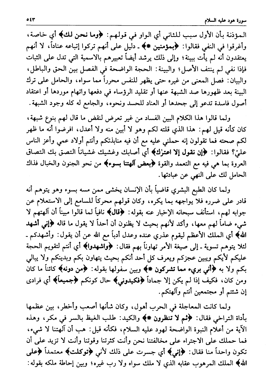 ولما كان الطبع البشري قاضياً بأن الإنسان يخشى ممن مسه بسوء وهو يتوهم أنه قادر على ضرره فلا يواجهه بما يكره ، وكان قولهم محركاً للسامع إلى الاستعلام عن حوابه لهم ، استأنف سبحانه الإخبار عنه بقوله : ( قال ( نافياً لما قالوا مبيناً أن آلهتهم لا شيء ضاماً لهم معها ، وأكد لأنهم بحيث لا يظنون أن أحداً لا يقول ما قاله ) إني أشهد الله ) أي الملك الأعظم ليقوم عذري عنده وعدل أدباً مع الله عن أن يقول : وأشهدكم - لئلا يتوهم تسوية 0 إلى صيغة الأمر تهاوناً بهم فقال : ( واشهدوا ) أي أنتم لتقويم الحجة عليكم لأيكم ويبين عجزكم ويعرف كل أحد أنكم بحيث يتهاون بكم وبدينكم ولا يبالي بكم ولا به ) أني بريء مما تشركون ( وبين سفولها بقوله : ( من دونه ( كائناً ما كان ومن كان ، فكيف إذا لم يكن إلا جماداً ) فكيدوني ( حال كونكم ) جميعاً ) أي فرادى إن شئتم أو مجتمعين أنتم وآلهتكم .