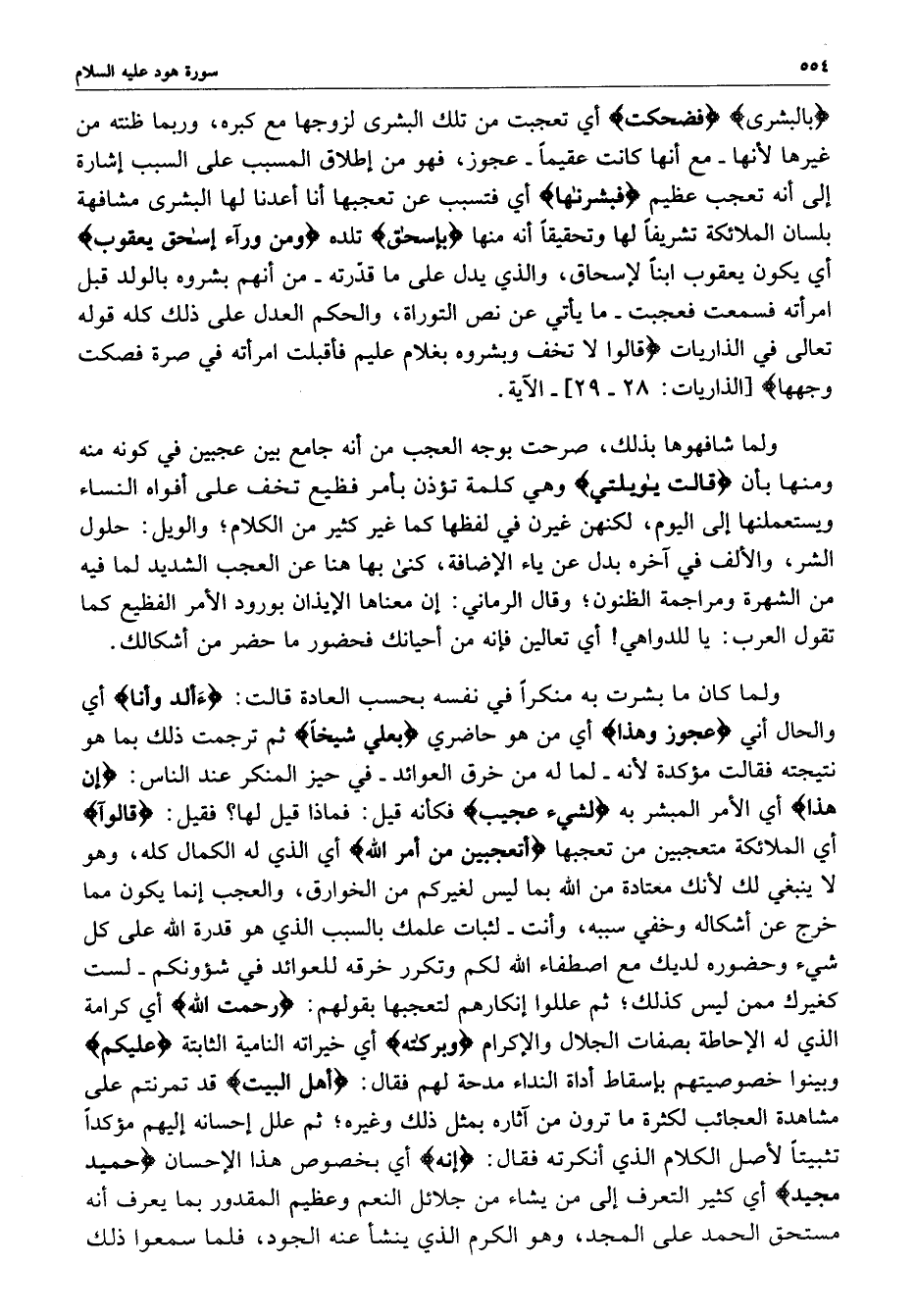 ) بالبشرى ( ) فضحكت ) أي تعجبت من تلك البشرى لزوجها مع كبره ، وربما طنته من غيرها لأنها - مع أنها كانت عقيماً - عجوز ، فهو من إطلاق المسبب على السبب إشارة إلى أنه تعجب عظيم ) فبشرناها ) أي فتسبب عن تعجبها أنا أعدنا لها البشرى مشافهة بلسان الملائكة تشريفاً لها وتحقيقاً أنه منها ) بإسحاق ( تلده ) ومن وراء إسحاق يعقوب ) أي يكون يعقوب ابناً لإسحاق ، والذي يدل على ما قدّرته - من أنهم بشروه بالولد قبل امرأته فسمعت فعجبت - ما يأتي عن نص التوراة ، والحكم العلد على ذلك كله قوله تعالى في الذريات