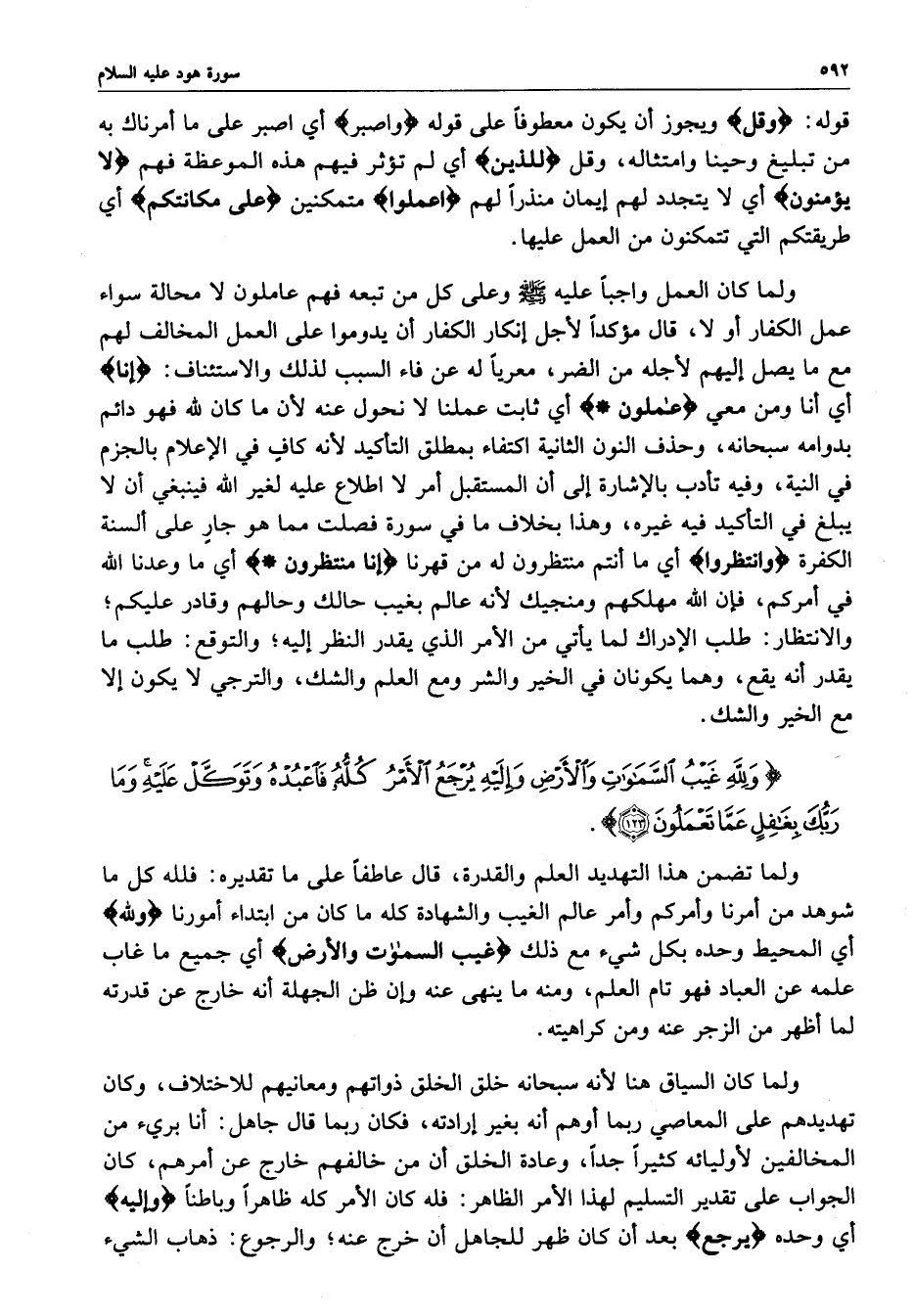 ) وَللَّهِ غَيْبُ السَّمَاوَاتِ وَالأَرْضِ وَإِلَيْهِ يُرْجَعُ الأَمْرُ كُلُّهُ فَاعْبُدْهُ وَتَوَكَّلْ عَلَيْهِ وَمَا رَبُّكَ بِغَافِلٍ عَمَّا تَعْمَلُونَ ( ( )