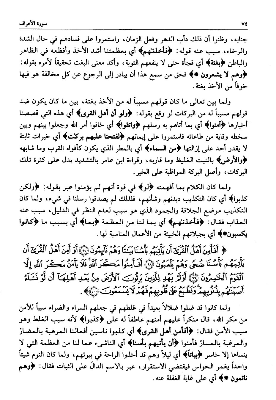 الأعراف : ( 97 - 100 ) أفأمن أهل القرى. .. . .